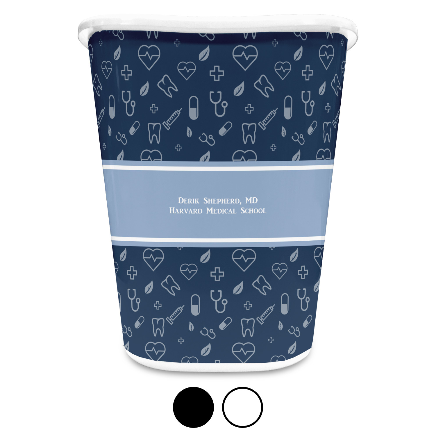 You can choose to purchase these decorative wastebaskets in either a white or a black color that will show on the base and the upper rim. Your customization is printed on a high-gloss, fine-quality vinyl adhesive, and you can choose to either have this adhesive applied to one side only or to both sides. As such, this plastic wastebasket can be single-sided or double-sided, depending on your creative vision. Your customization is printed using durable inks, making the design waterproof and resistant to fading over time.