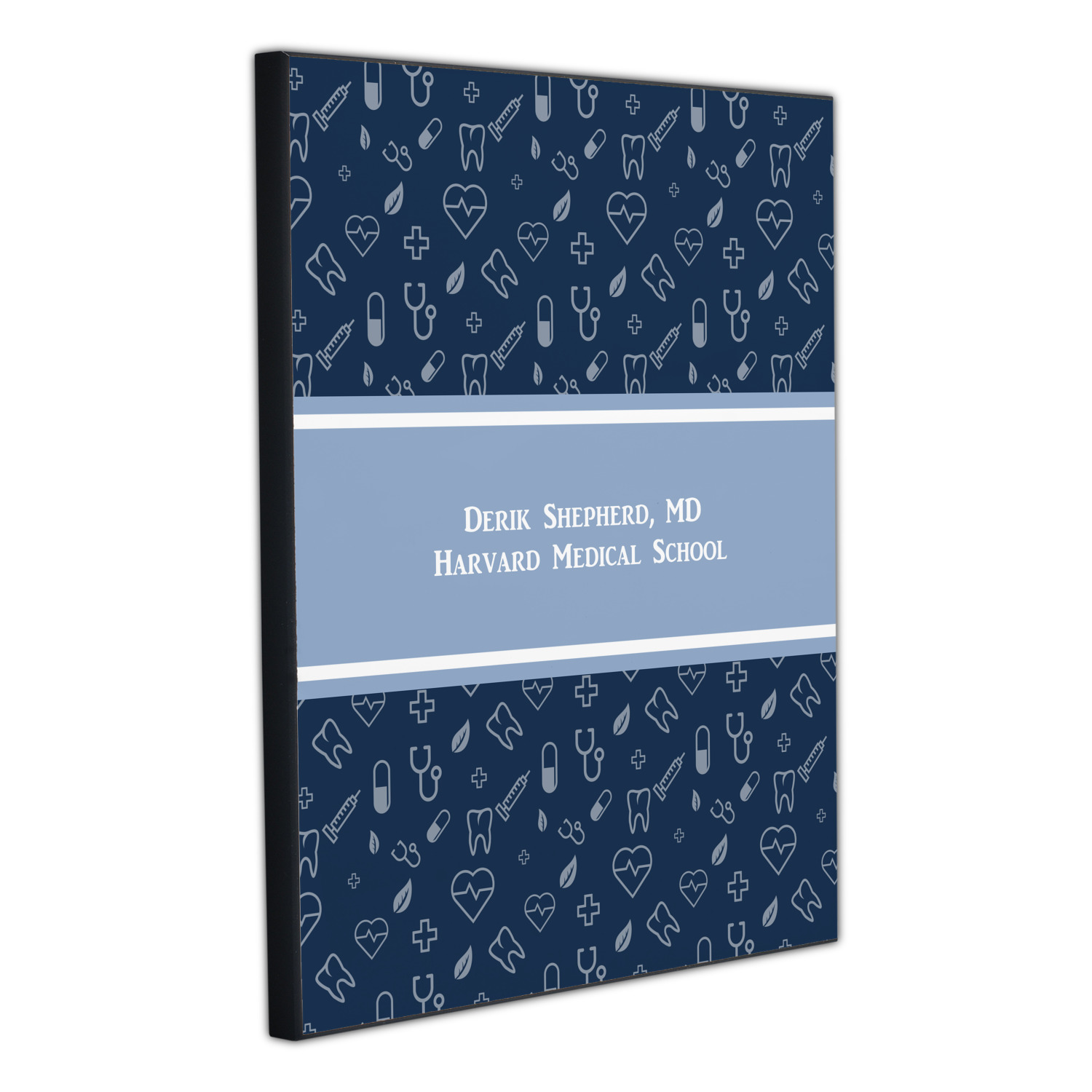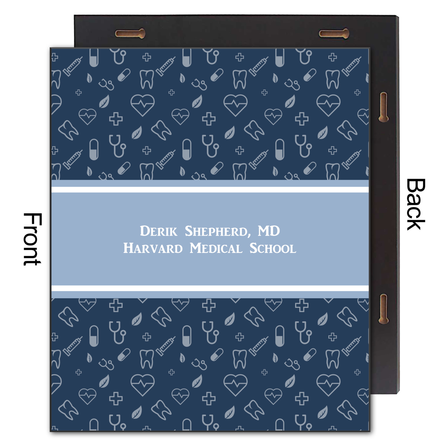 This design features a subtle background with different medical symbols. It is a navy blue with cream accents. There is a large ribbon where your personalization goes! The coordinating design features a quote that says "keep calm, I'm a doctor." This is such a fun design for any medical doctor!
