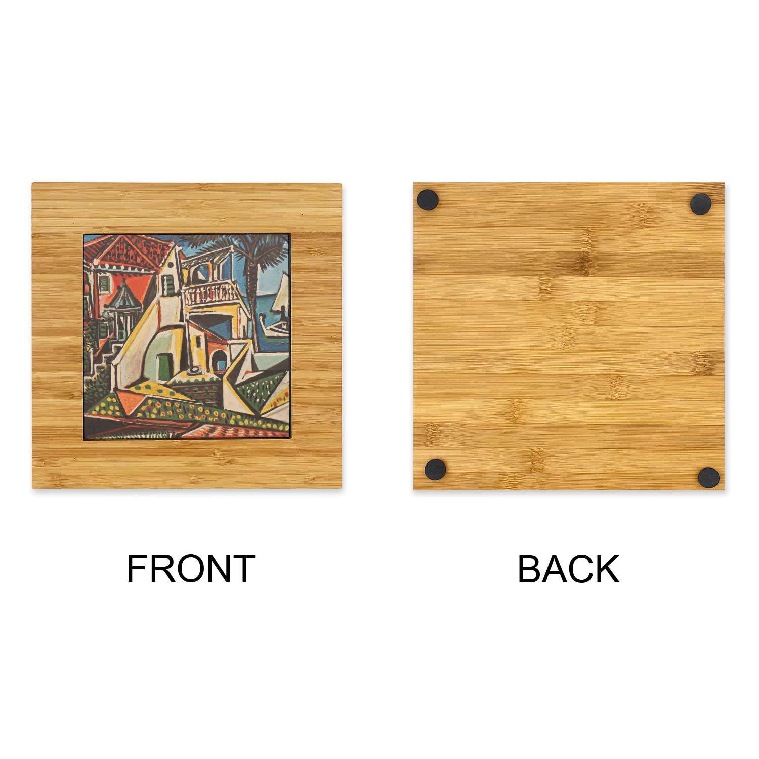 The center is highlighted by a 6in ceramic tile that is printed with the design of your choice. The tile sits slightly higher than the bamboo to ensure the majority of the heat stays on the tile not on the bamboo.