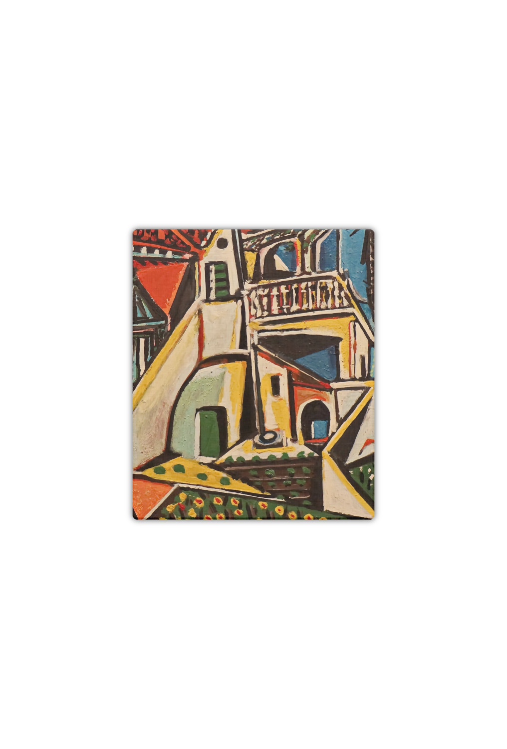 This particular piece was completed in 1952, after Picasso's cubism style was developed. The choppy and irregular shapes resemble a collage or synthetic cubism. Synthetic cubism is the use of cut paper fragments, wallpaper or newspaper, pasted together in order to create a composition. This style was a way to analyze objects by their shape.