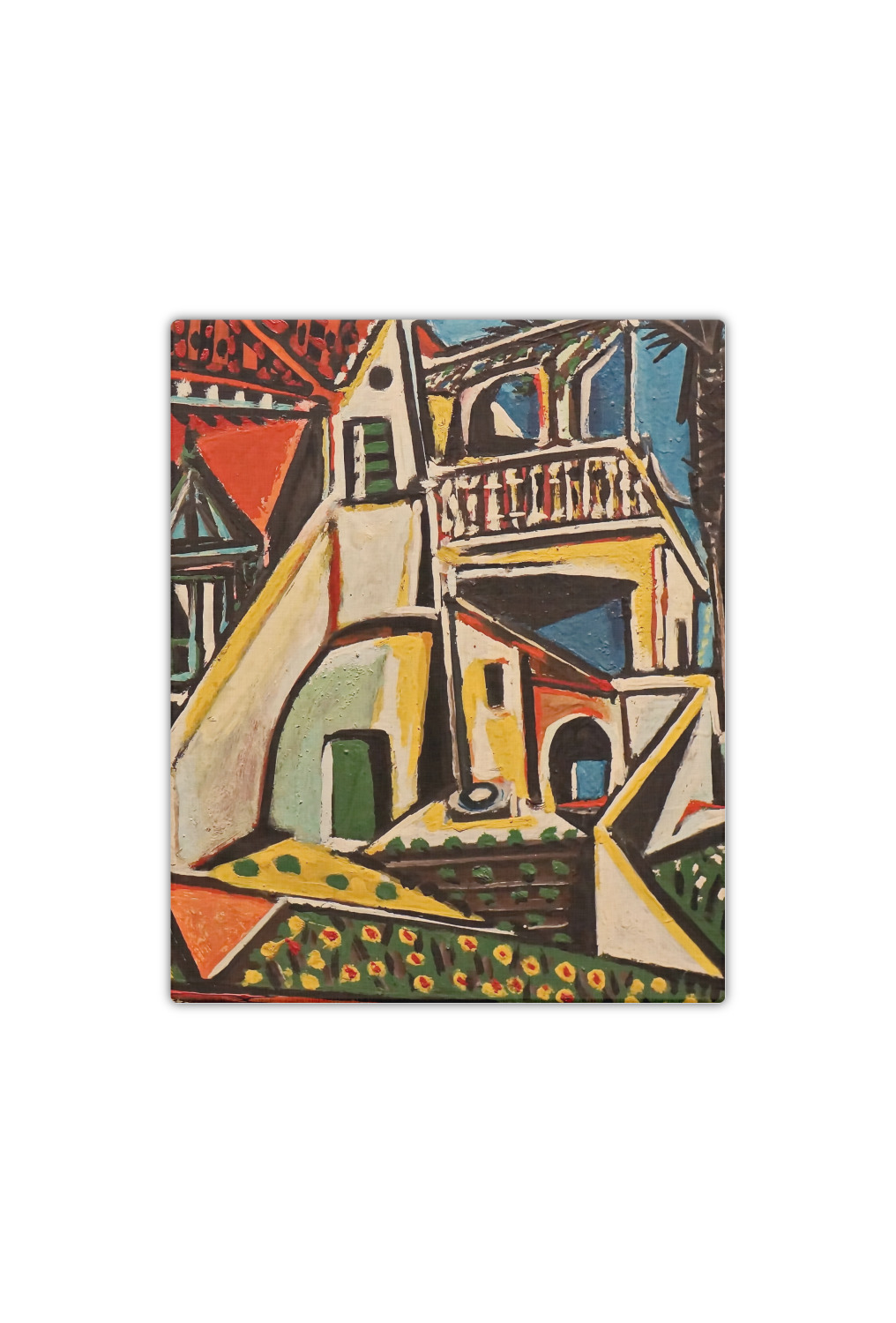 This particular piece was completed in 1952, after Picasso's cubism style was developed. The choppy and irregular shapes resemble a collage or synthetic cubism. Synthetic cubism is the use of cut paper fragments, wallpaper or newspaper, pasted together in order to create a composition. This style was a way to analyze objects by their shape.