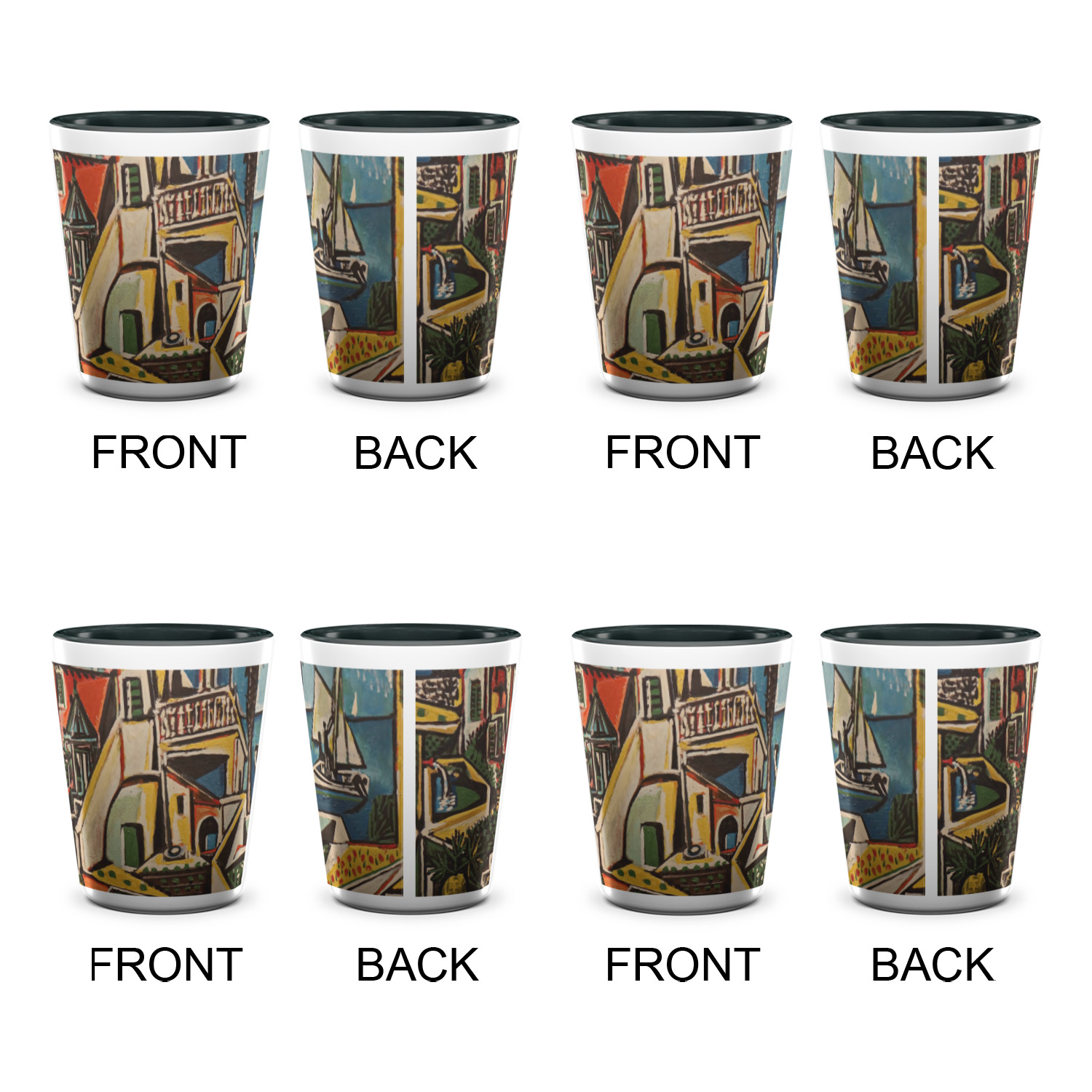 Made from ceramic these shot glasses are printed in full color with the design of your choice. These are a standard 1.5oz size and stand 2.25" tall. Available in a full white ceramic or a two-tone with a black color inside the shot glass. Buy a single or a set of 4, all of which can be designed separately to get you just what you want and need.