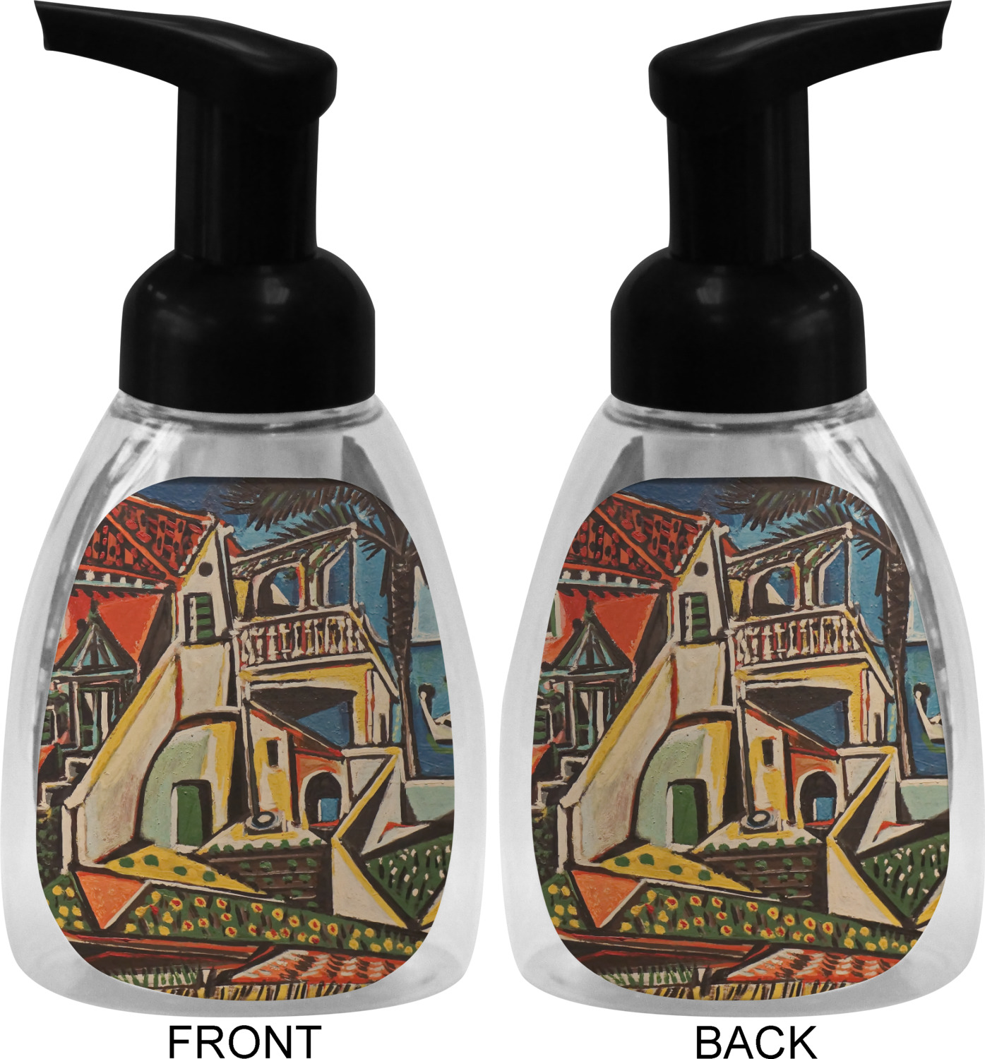This soap dispenser is made of a robust plastic and has a clear base. The included soap pump is available in black or white color. This dispenser is 6.5 inches tall, 3 inches wide, and 2 inches deep. We display your customized designs on the front and back sides of these foaming hand soap dispensers.