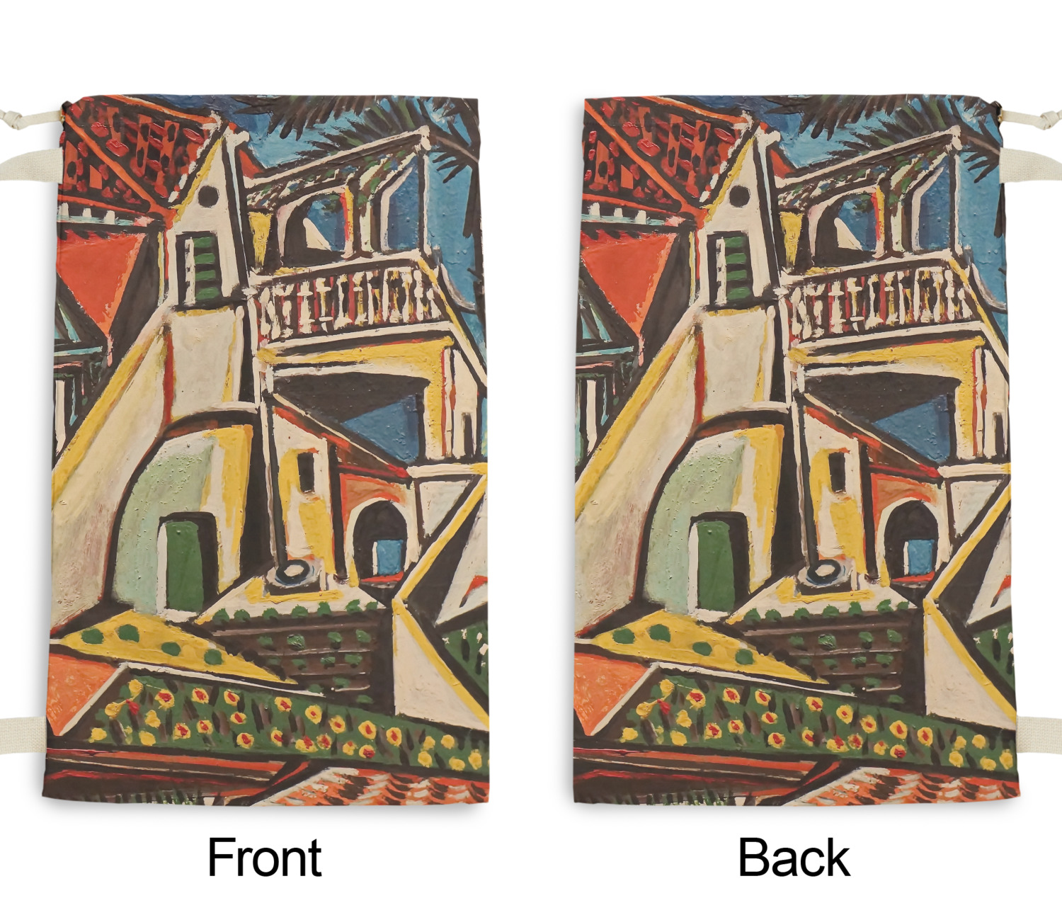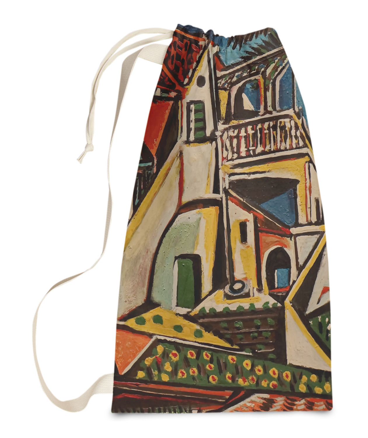Our laundry bags are handmade in the USA; The fabric is printed using dye sublimation. The fabric is then cut and the grommets are added for the drawstring closure. The laundry bag is then sewn and the drawstring is fed through and knotted to create the cinch closure.