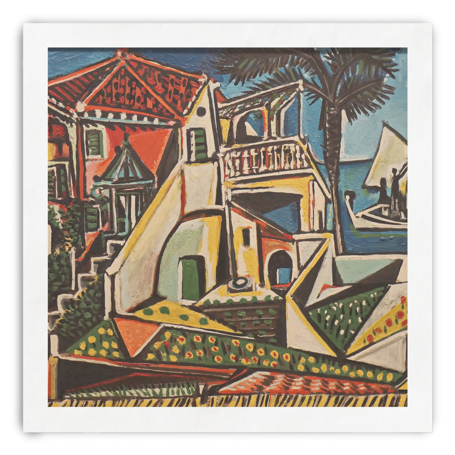 This particular piece was completed in 1952, after Picasso's cubism style was developed. The choppy and irregular shapes resemble a collage or synthetic cubism. Synthetic cubism is the use of cut paper fragments, wallpaper or newspaper, pasted together in order to create a composition. This style was a way to analyze objects by their shape.