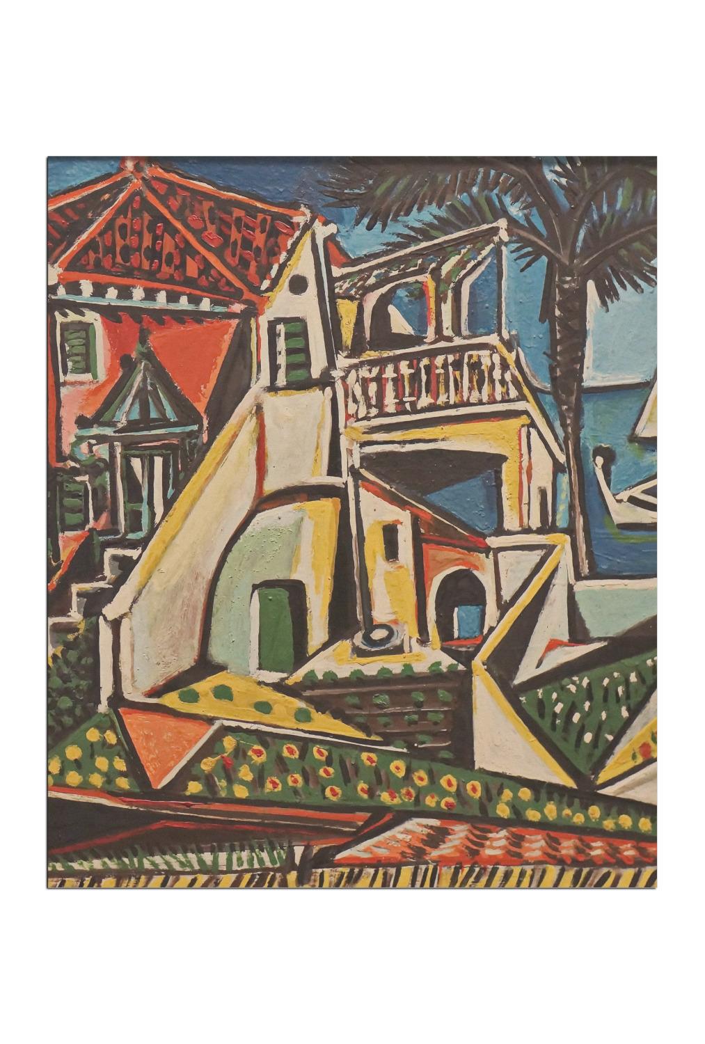 This particular piece was completed in 1952, after Picasso's cubism style was developed. The choppy and irregular shapes resemble a collage or synthetic cubism. Synthetic cubism is the use of cut paper fragments, wallpaper or newspaper, pasted together in order to create a composition. This style was a way to analyze objects by their shape.