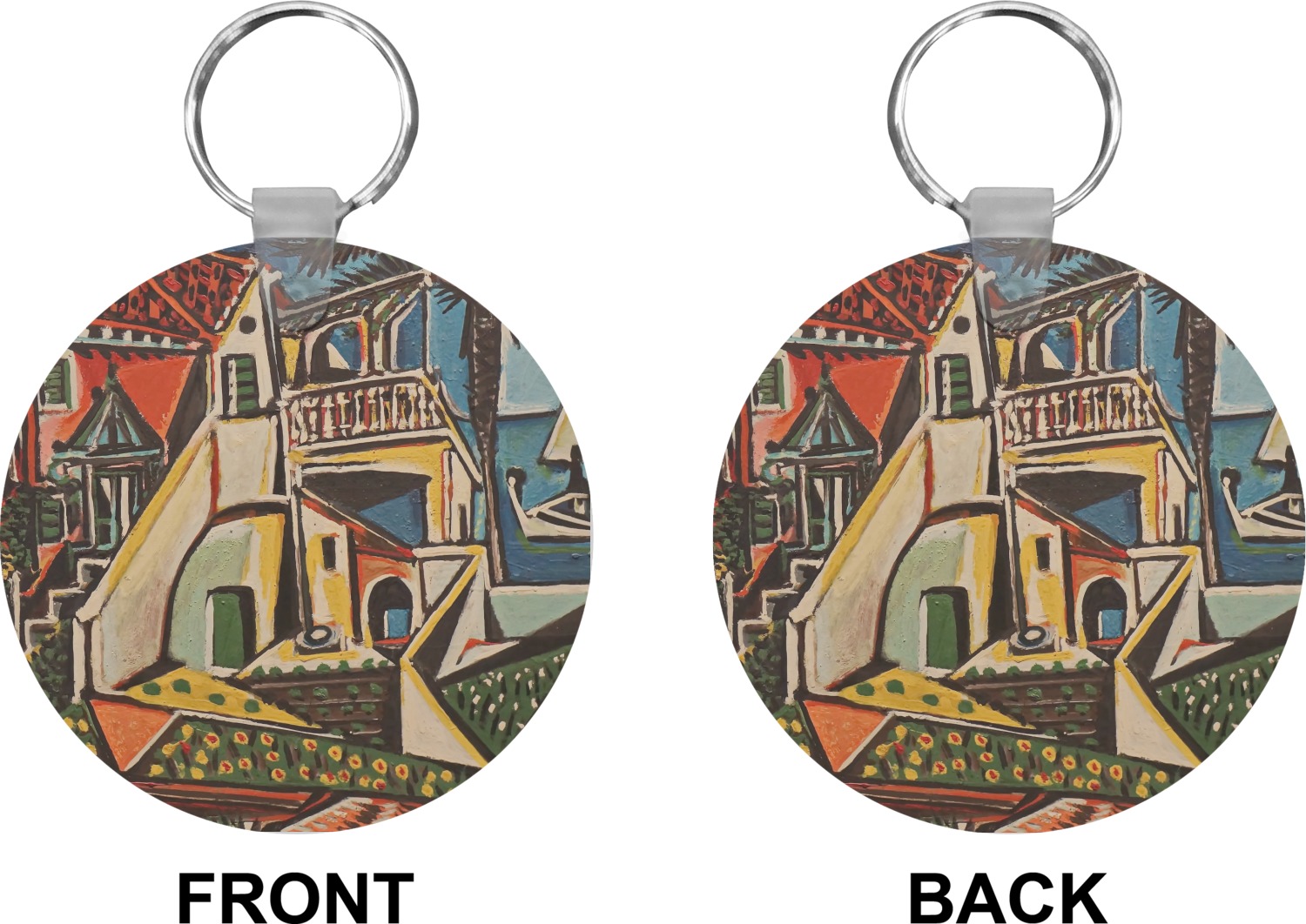 Our personalized keychains attach to the included metal, split key ring with a plastic, removable snap. Since a metal ring is included with your purchase, you have the liberty to keep your keys together on the ring, with or without your unique keychain. We offer this keychain in three different shapes: circle, heart, or diamond. We print your personalized design(s) on both sides of the key chain, and the surface has a glossy, reflective finish that only emphasizes your design. Each keychain is approximately 2.25 by 2.25 inches.