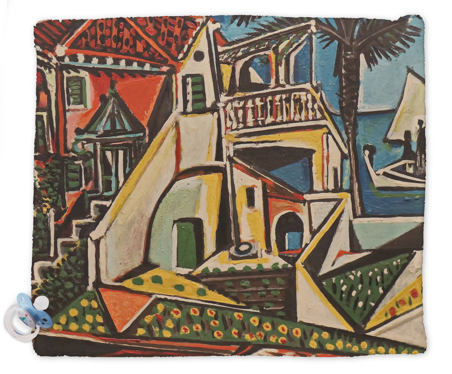 This particular piece was completed in 1952, after Picasso's cubism style was developed. The choppy and irregular shapes resemble a collage or synthetic cubism. Synthetic cubism is the use of cut paper fragments, wallpaper or newspaper, pasted together in order to create a composition. This style was a way to analyze objects by their shape.
