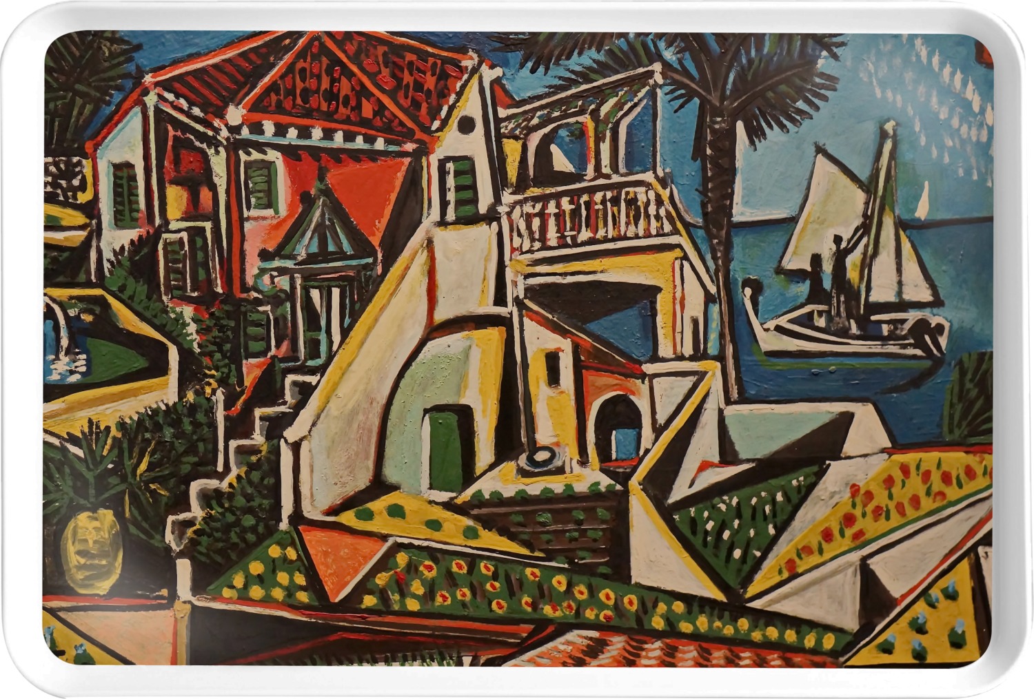 This particular piece was completed in 1952, after Picasso's cubism style was developed. The choppy and irregular shapes resemble a collage or synthetic cubism. Synthetic cubism is the use of cut paper fragments, wallpaper or newspaper, pasted together in order to create a composition. This style was a way to analyze objects by their shape.