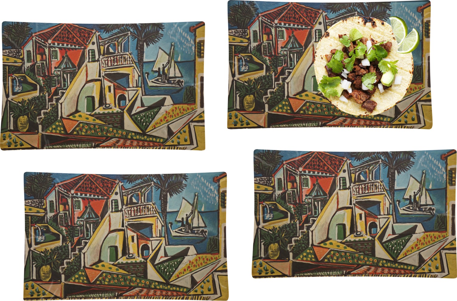 This rectangular plate is about 14" in width and 10" in height; the perfect size for lunch or dinner. These plates are dishwasher safe - proving high in function and in beauty.