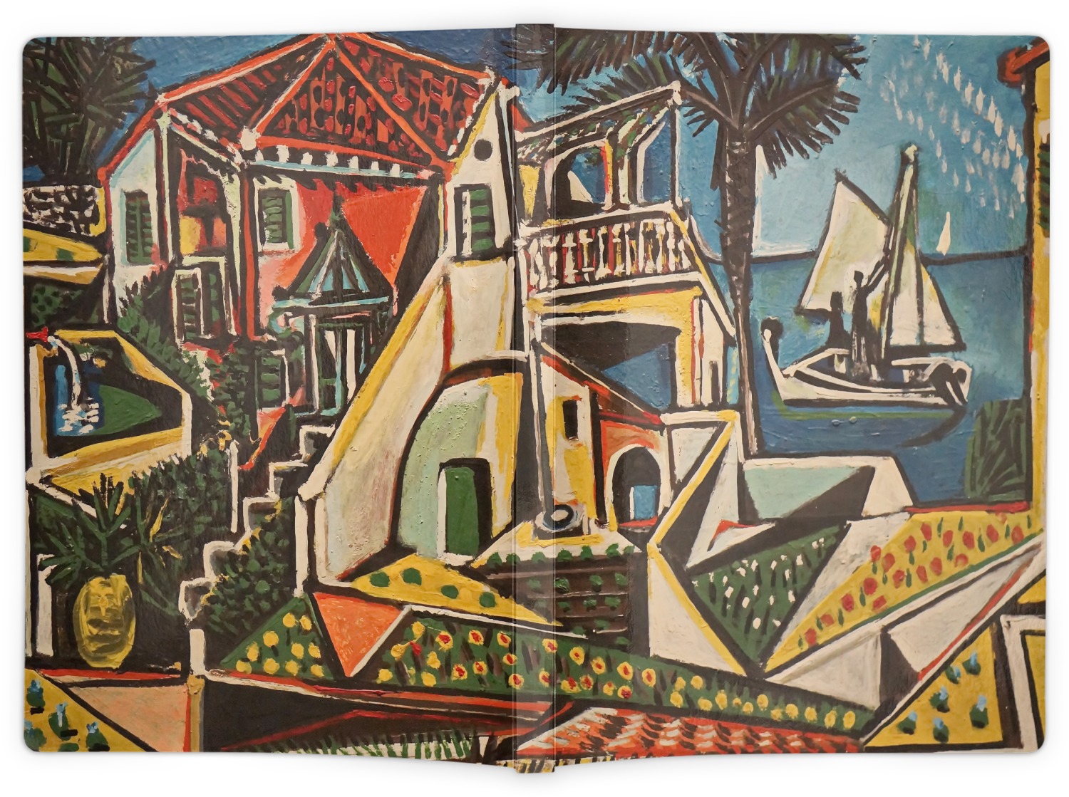 This particular piece was completed in 1952, after Picasso's cubism style was developed. The choppy and irregular shapes resemble a collage or synthetic cubism. Synthetic cubism is the use of cut paper fragments, wallpaper or newspaper, pasted together in order to create a composition. This style was a way to analyze objects by their shape.