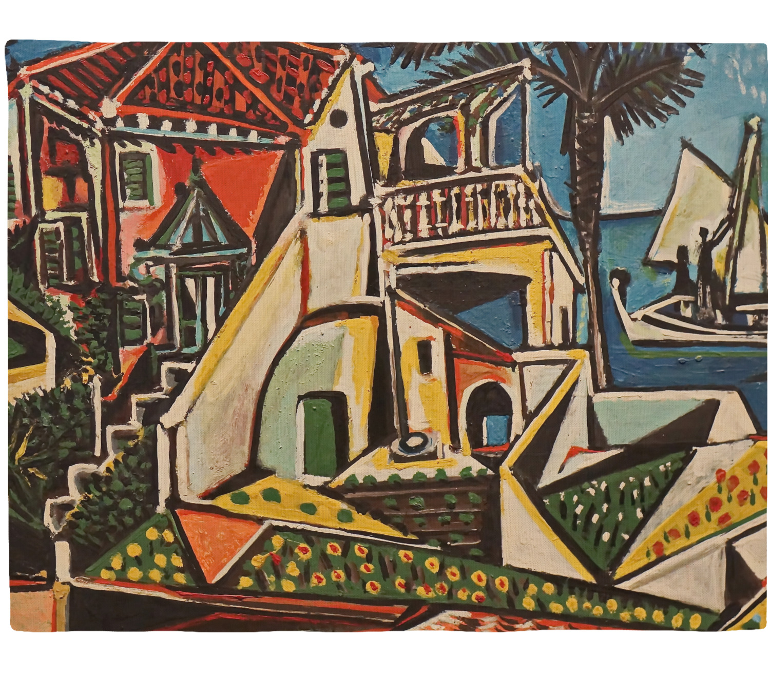 This particular piece was completed in 1952, after Picasso's cubism style was developed. The choppy and irregular shapes resemble a collage or synthetic cubism. Synthetic cubism is the use of cut paper fragments, wallpaper or newspaper, pasted together in order to create a composition. This style was a way to analyze objects by their shape.