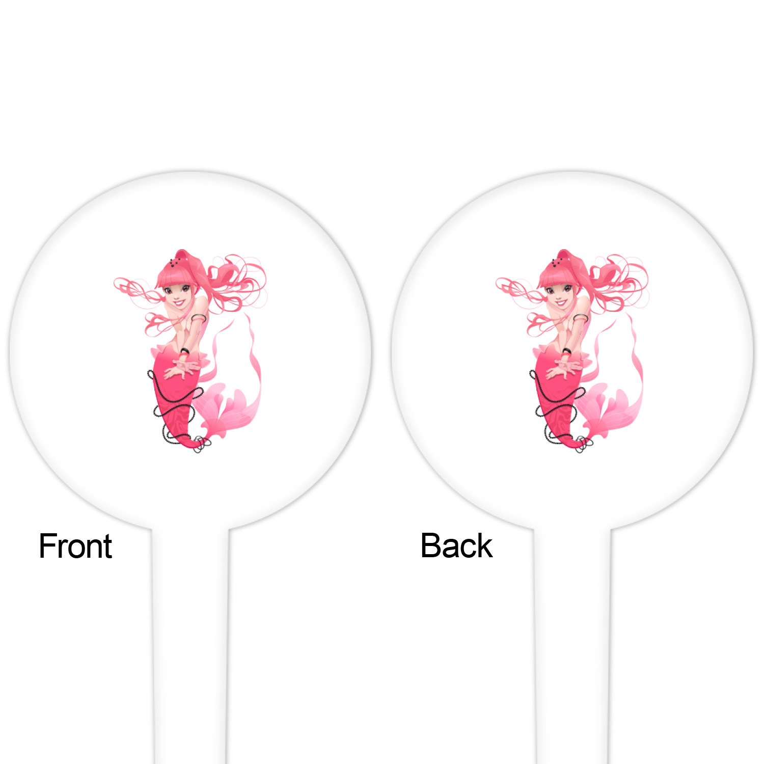 The round disc on these food & drink picks can be customized and personalized to your specifications. Your image will be printed in full color on one side or both sides. You can use the same image on both sides or use two different images.
