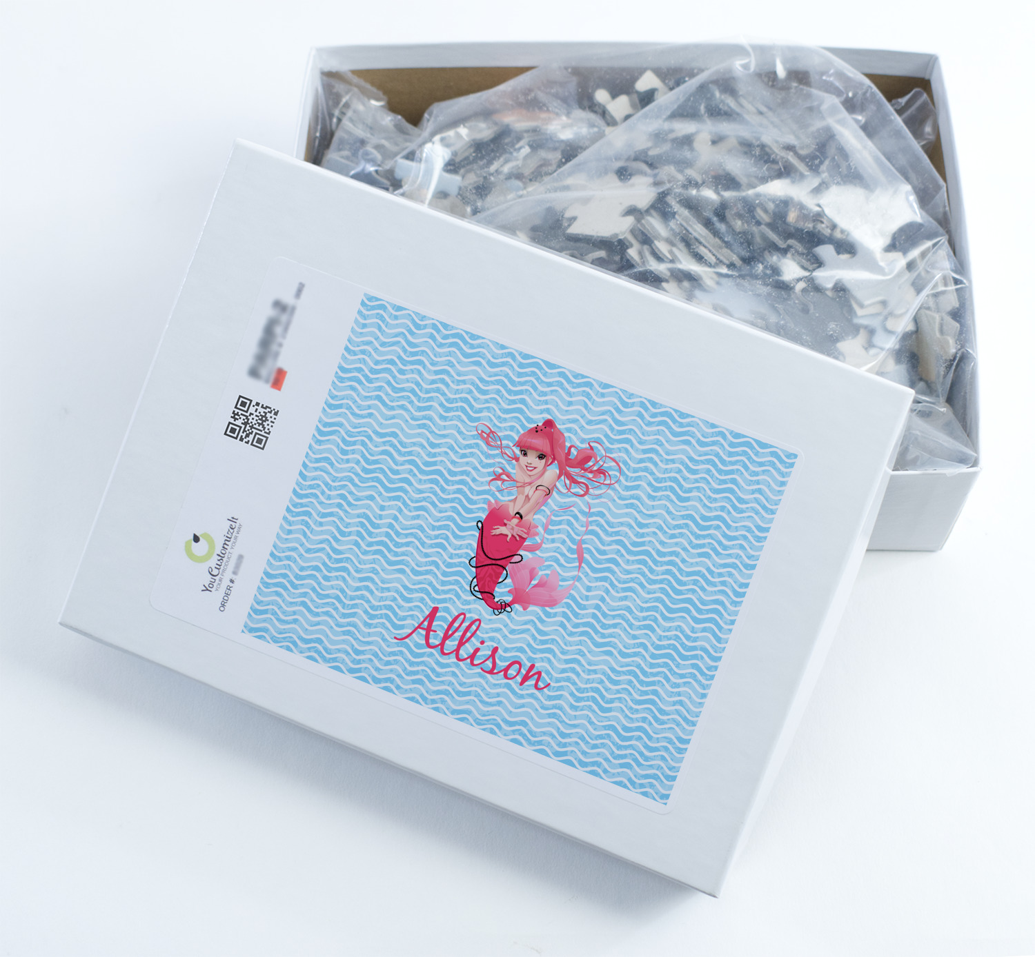We print our puzzles on thick white chipboard in vibrant colors, then laminate the chipboard and die cut your puzzle. Your jigsaw puzzle is shipped to you in a box with the image of the puzzle on the box.