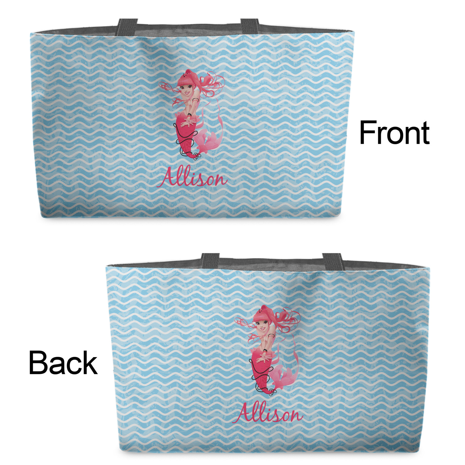 You can design the totes with a design on the front and another one on the back. The two designs can be identical or completely different. The choice is yours.