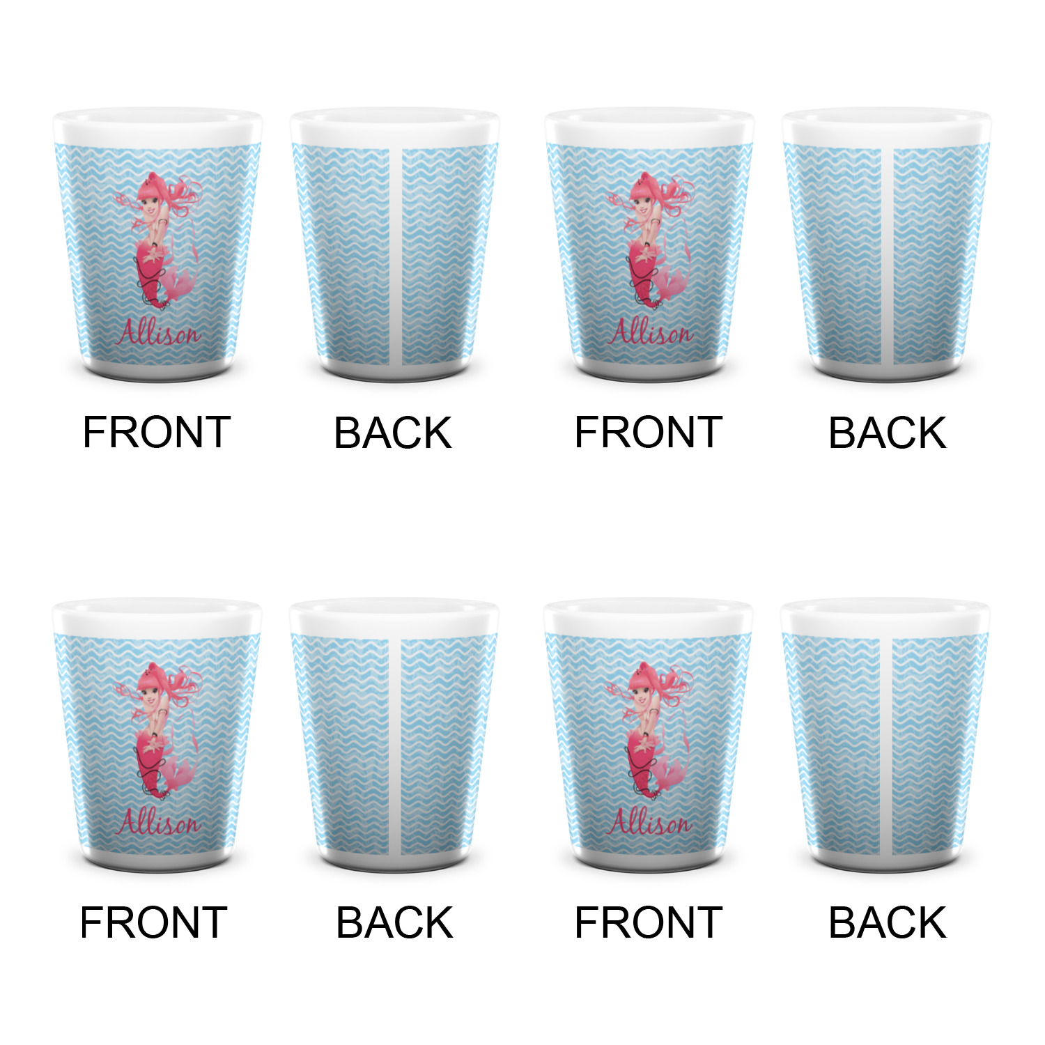 Made from ceramic these shot glasses are printed in full color with the design of your choice. These are a standard 1.5oz size and stand 2.25" tall. Available in a full white ceramic or a two-tone with a black color inside the shot glass. Buy a single or a set of 4, all of which can be designed separately to get you just what you want and need.