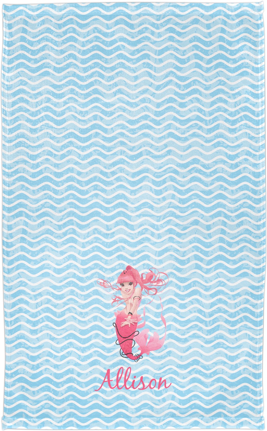 Start your deep sea adventure with this whimsical Mermaid design. Our design shows a playful mermaid with pink hair and tail with black beads on dynamic blue waves. We have other mermaids including some more suitable for younger girls in our system, so you can always change out the mermaid graphic.