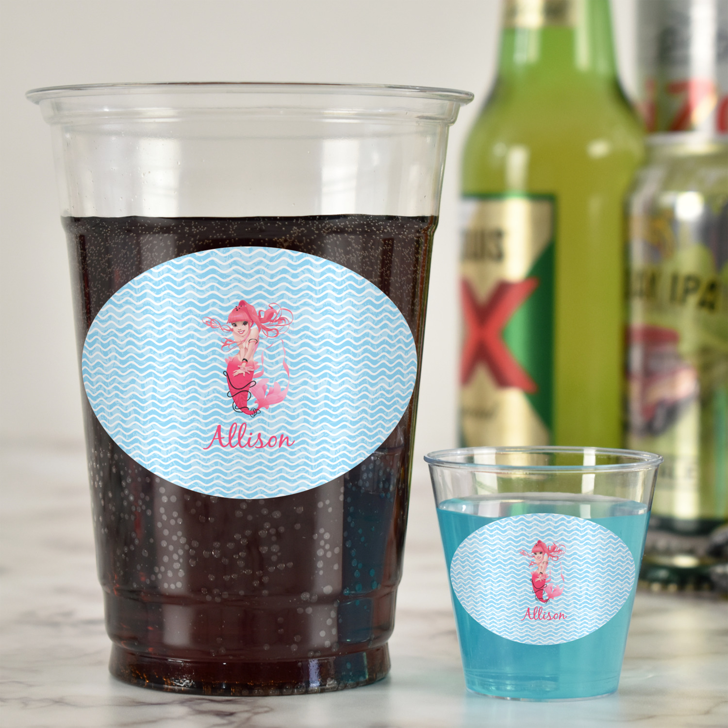 After designing your customized shot glasses we will print the design on a durable water resistant vinyl and apply it to the disposable shot glasses. Order these in quantity denominations of 6 and get them for lower pricing the more you order!