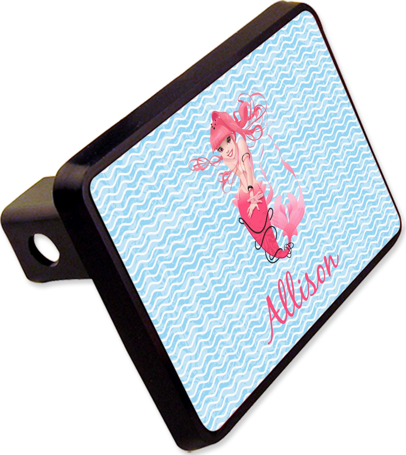Our receiver hitch covers are molded, durable, and available in a size that fits 2in., square receiver holes. This model is best suited for a Class 3 or Class 4 hitch, but please consult our hitch sizing guide to make an informed purchase. We print your design on the surface of the rectangular cover, while the rest of the cover is a sleek, black color. The design's vibrancy will last up to 2 years in harsh sunlight. Designed for easy attachment, the cover slides easily into your trailer hitch and can be secured using a pin (not included).