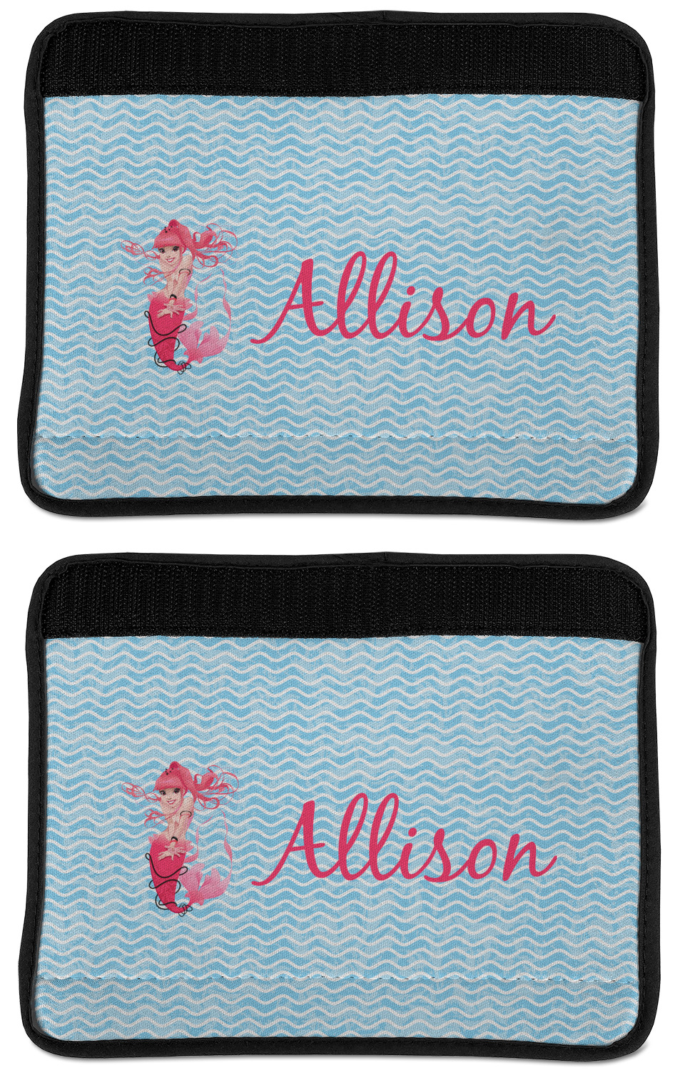 Made from neoprene, our seat belt strap covers wrap around the belt itself and have a Velcro tab for easy attachment and closure. The belt's edges are trimmed with a black polyester for a secure finish. Each cover is 9.5 by 7 inches when open and 9.5 by 2.5 inches when closed. We print your personalized design on the face of the seat belt pad.