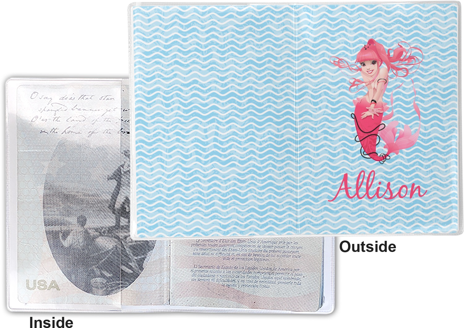 This cover is made of a sturdy clear vinyl with a personalized vinyl insert inside. There is a large and a small pocket on either side to hold the covers of your passport easily and firmly. The passport holder is approximately 7.5" x 5.25", the perfect size to snugly fit your passport. This slim cover is the perfect way to protect your passport without being one more bulky item you have to carry.