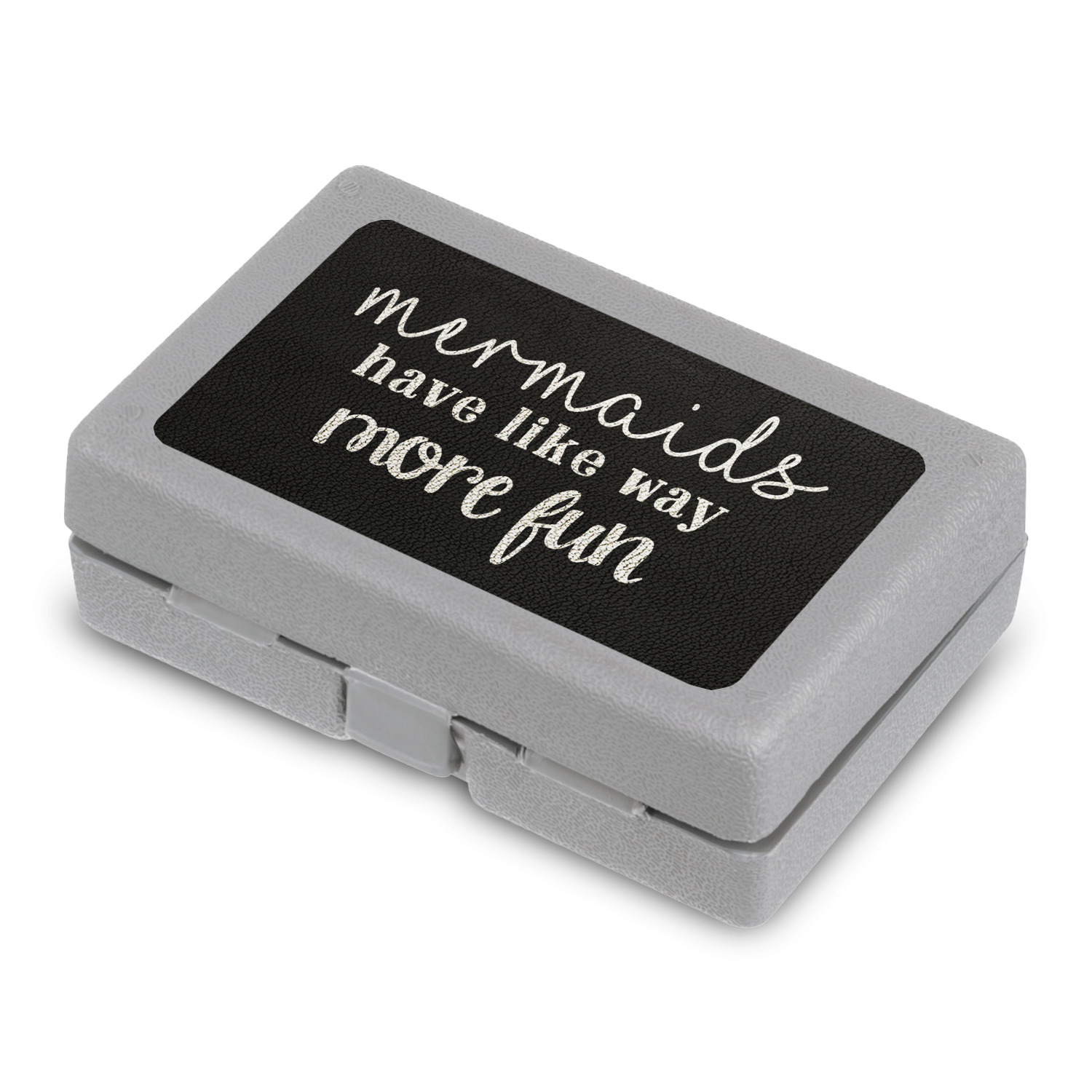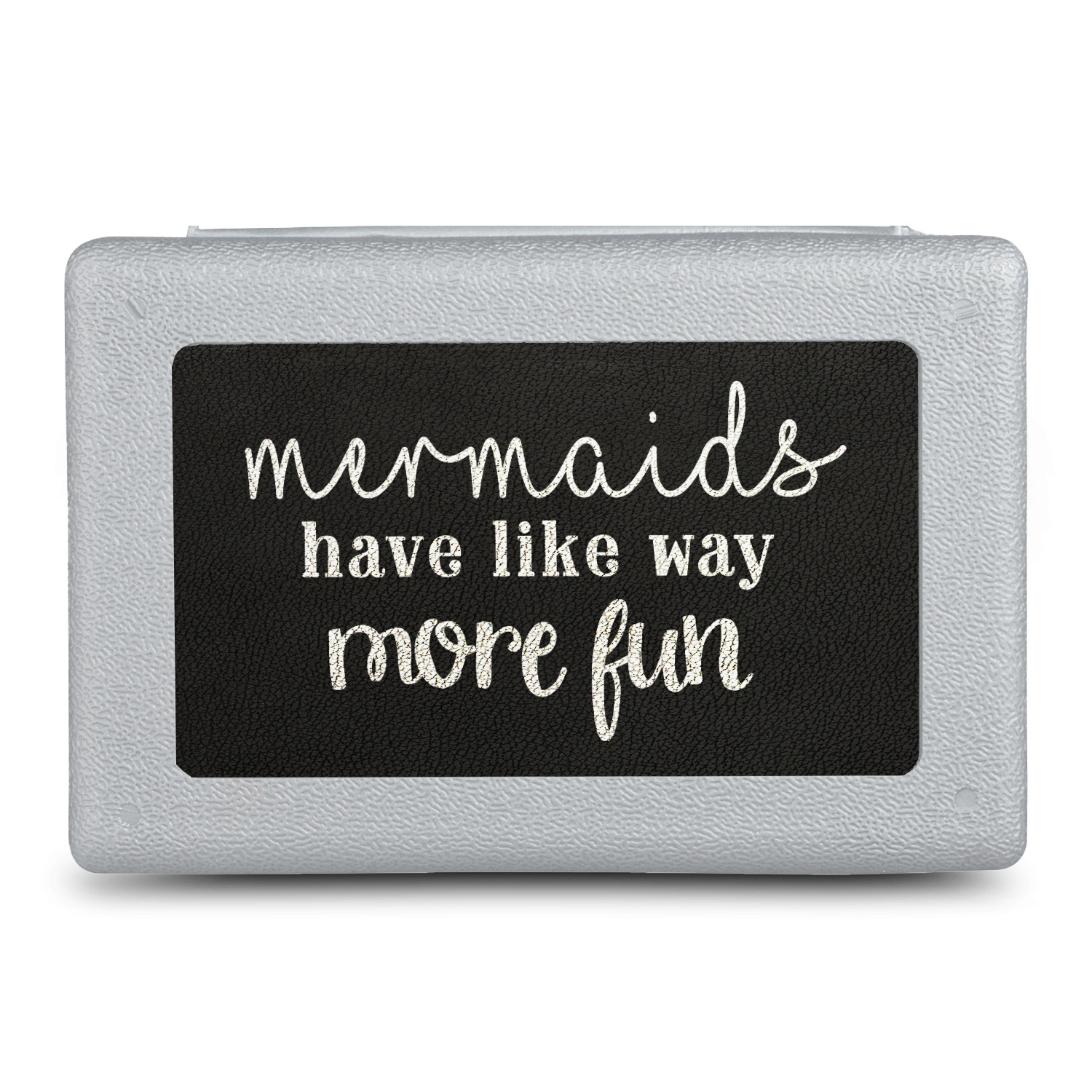 Love mermaids? This customize-able design has mermaids, sea creatures such as seahorses, fish, crabs, seahorses, oysters, seaweed and of course a treasure chest. We chose a soft blue to represent water for the background. You can change this to any color you desire. We have featured a mermaid in a round label, along with personalization under the mermaid graphic.