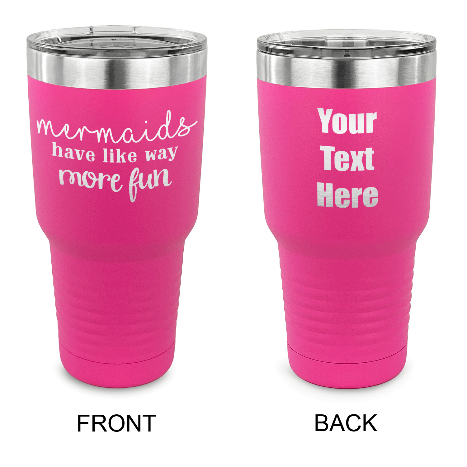 With the 5 colors - Black, Navy, Red, Pink and Coral, you are sure to find a cup to fit your personality. You can chose to engrave on the front or the front and back of the cup. Use our design studio to design your own cup and we laser engrave it for you.