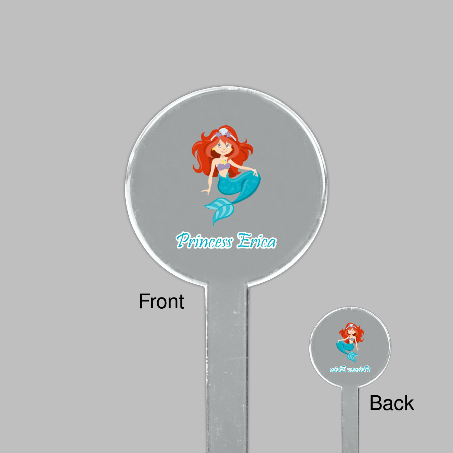 Love mermaids? This customize-able design has mermaids, sea creatures such as seahorses, fish, crabs, seahorses, oysters, seaweed and of course a treasure chest. We chose a soft blue to represent water for the background. You can change this to any color you desire. We have featured a mermaid in a round label, along with personalization under the mermaid graphic.
