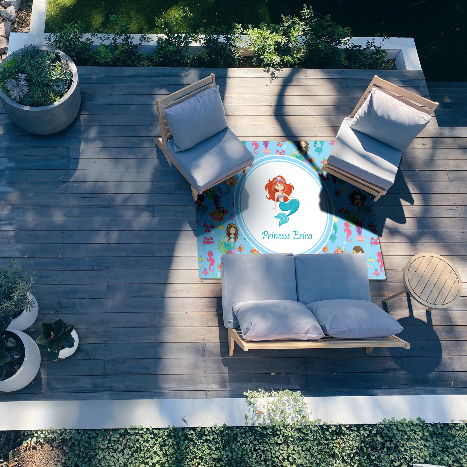 Patio rugs add color and warmth to your home's outdoor space, so create a custom patio rug to suit your personal style and match it to the colors of your outdoor décor. Have it personalized with a monogram, initial, name or a combination of these - the choice is yours.