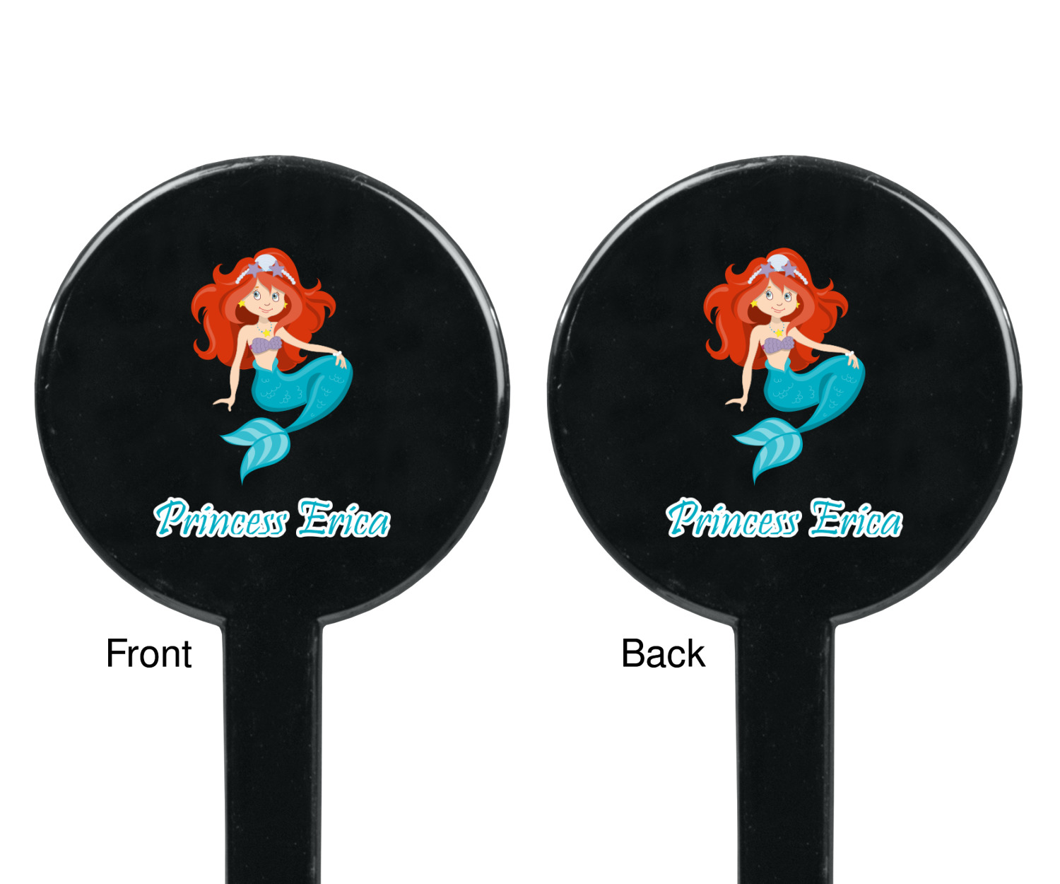 Love mermaids? This customize-able design has mermaids, sea creatures such as seahorses, fish, crabs, seahorses, oysters, seaweed and of course a treasure chest. We chose a soft blue to represent water for the background. You can change this to any color you desire. We have featured a mermaid in a round label, along with personalization under the mermaid graphic.