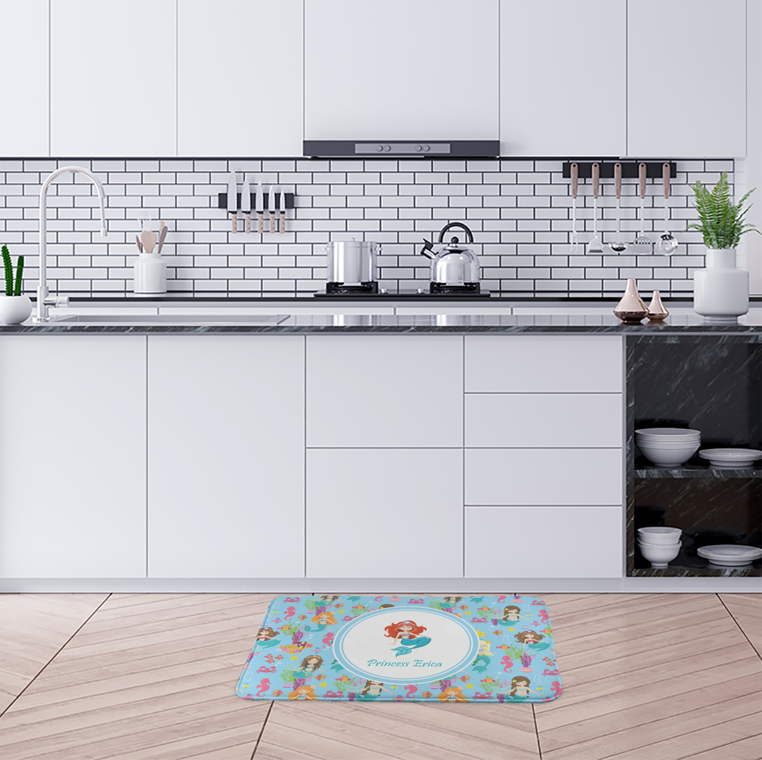 Love mermaids? This customize-able design has mermaids, sea creatures such as seahorses, fish, crabs, seahorses, oysters, seaweed and of course a treasure chest. We chose a soft blue to represent water for the background. You can change this to any color you desire. We have featured a mermaid in a round label, along with personalization under the mermaid graphic.