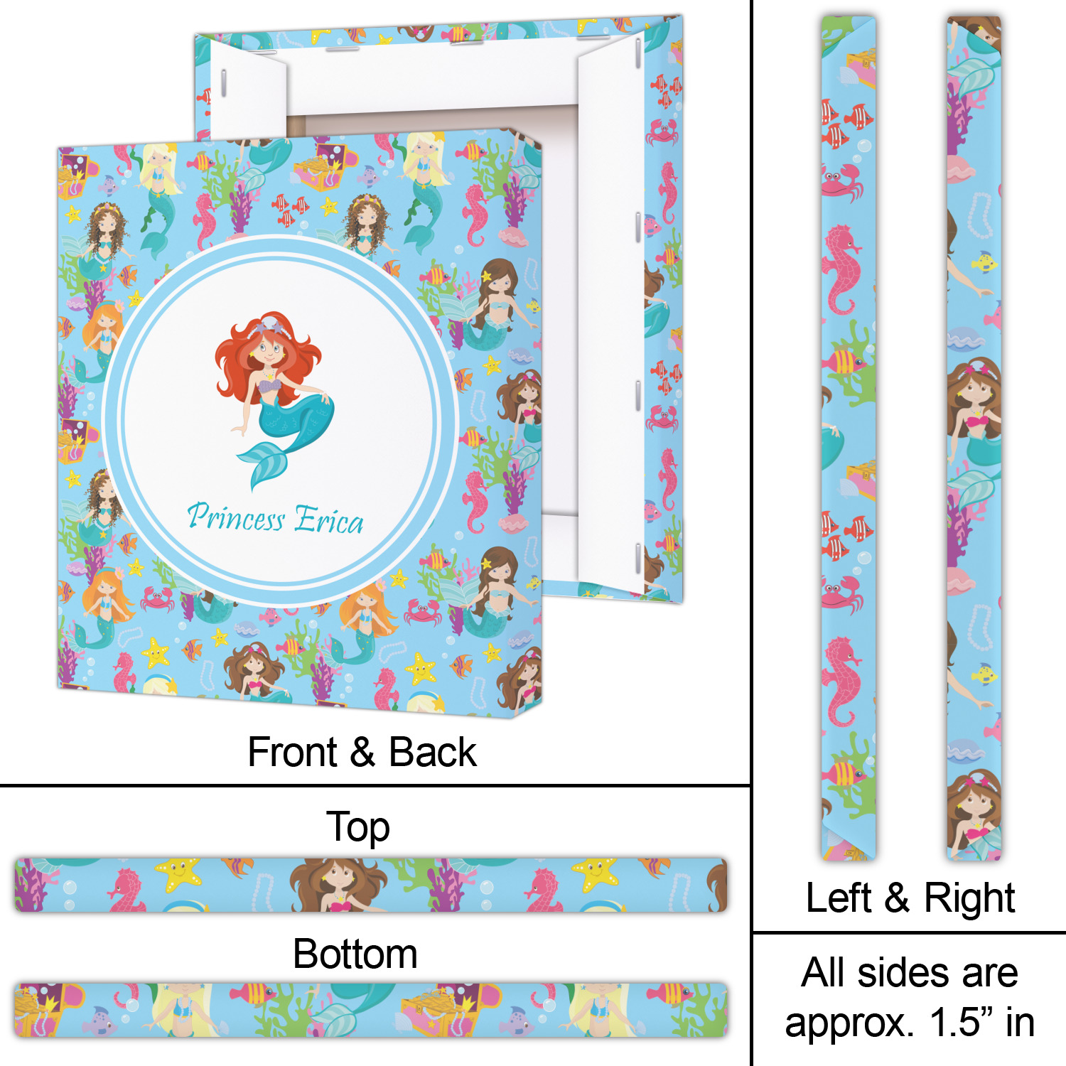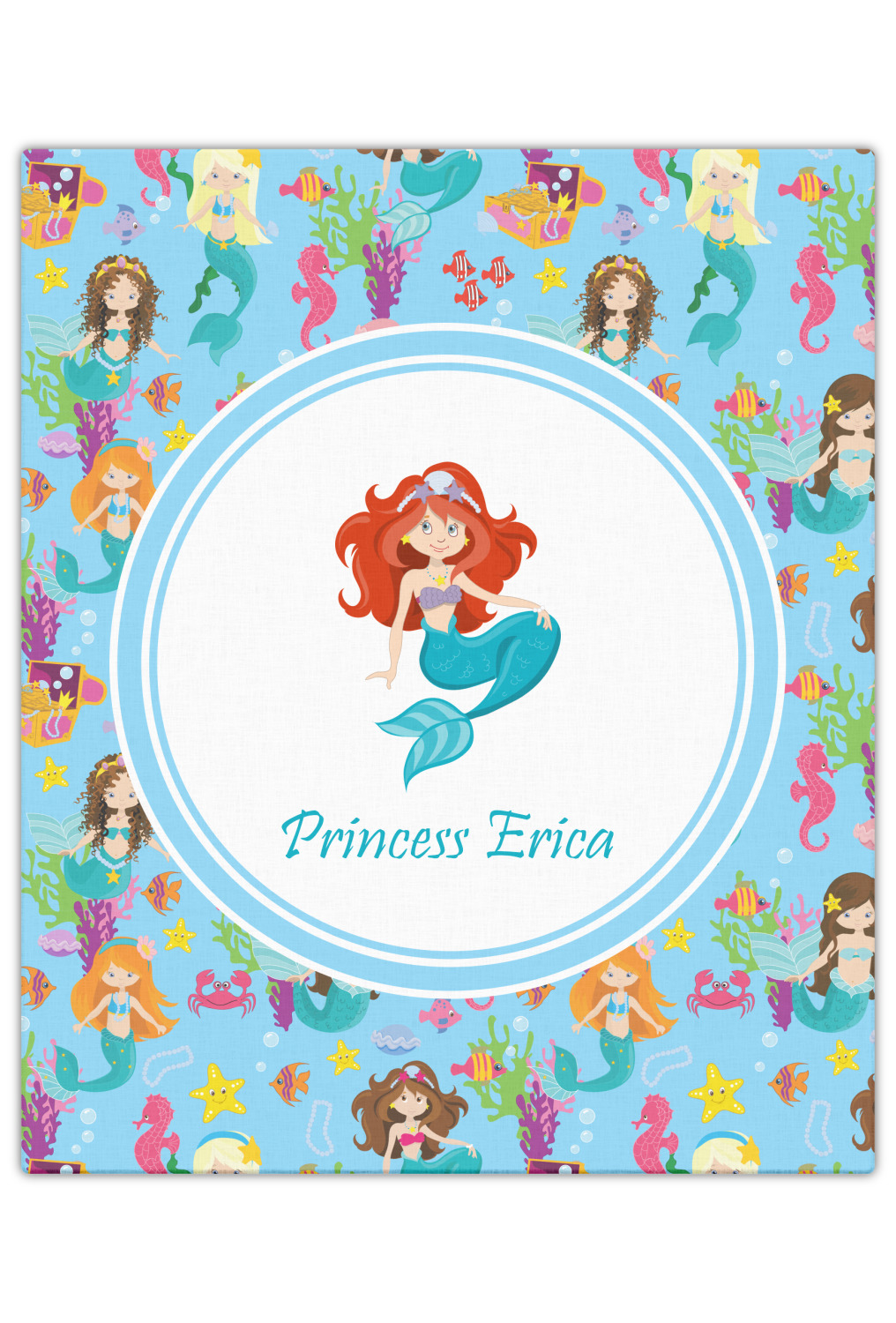 Love mermaids? This customize-able design has mermaids, sea creatures such as seahorses, fish, crabs, seahorses, oysters, seaweed and of course a treasure chest. We chose a soft blue to represent water for the background. You can change this to any color you desire. We have featured a mermaid in a round label, along with personalization under the mermaid graphic.