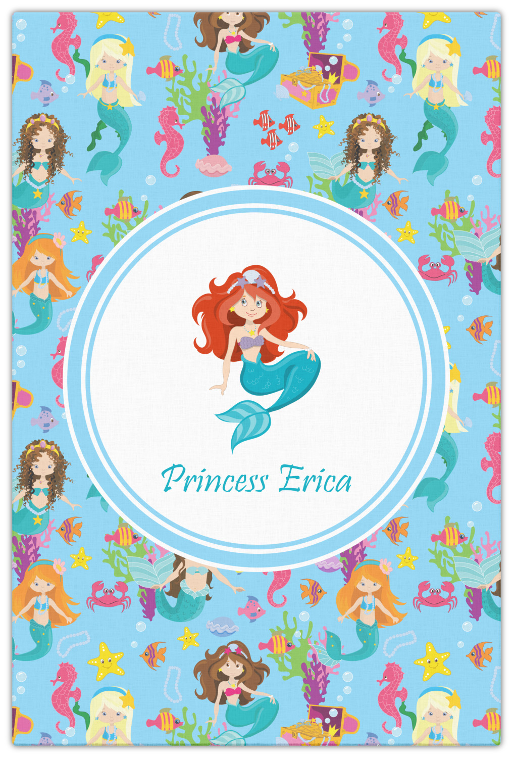 Love mermaids? This customize-able design has mermaids, sea creatures such as seahorses, fish, crabs, seahorses, oysters, seaweed and of course a treasure chest. We chose a soft blue to represent water for the background. You can change this to any color you desire. We have featured a mermaid in a round label, along with personalization under the mermaid graphic.