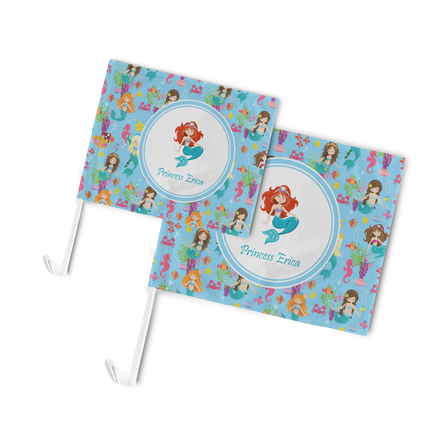 Our personalized flags are made from a durable, yet lightweight cloth that will proudly bear your logo or design of choice, while withstanding the outside elements. We have two size options - 8" x 11" and 11" x 15". Both come with a flag pole which includes a clip that secures the pole to the side window, whether it is rolled up or down. The flags are printed on both sides to display your design from all directions.