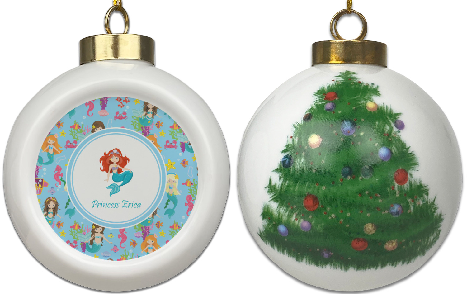 Our Christmas ornaments are a unique ceramic ball shape with a twist as it has a flat face to display your custom design! Select from one of our two design types - Christmas Tree or Poinsettia Garland - to adorn the curved back of your personal design. Each ornament measures 3H x 2.5W x 2D accompanied with a gold string accent for finishing touches to hang on your beautiful Christmas tree!