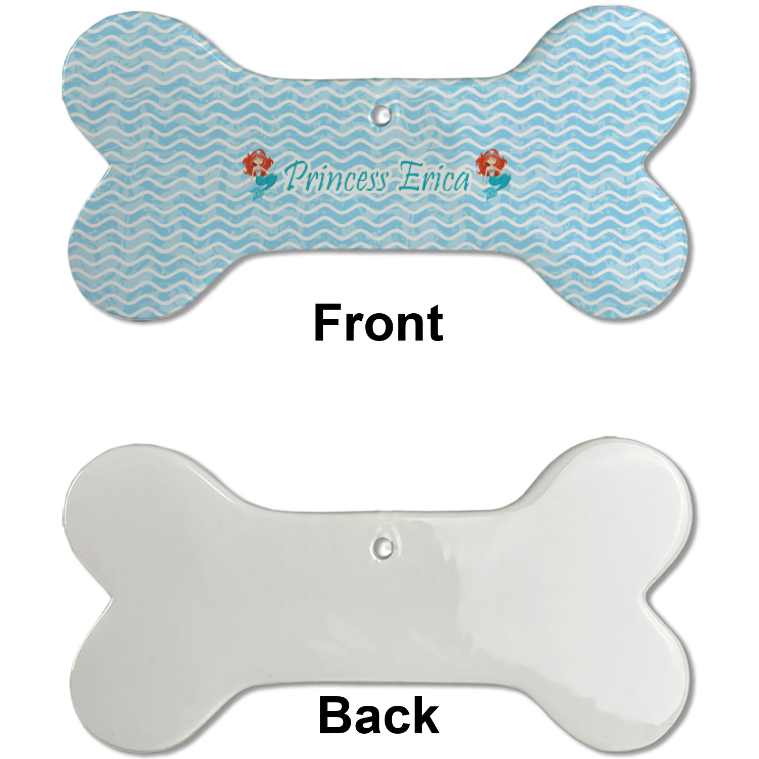 Our dog Christmas ornaments are a ceramic material with a bone-shaped structure hung horizontally. We offer two printing styles to personalize your furry friend's ornament! Choose a one-sided printing, perfect for wall decor, memorial accessory, or doghouse nameplate! Create a double-sided ornament perfect for adorning the Christmas tree. Each dog bone ornament is approximately 4.75" x 2.25" and is printed here in the USA.