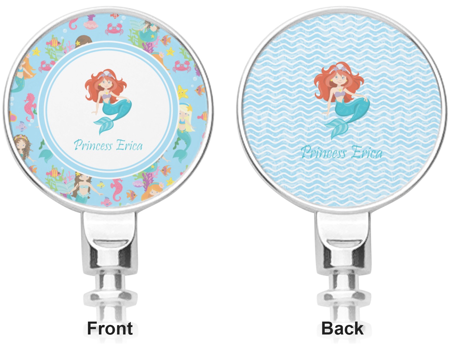 Love mermaids? This customize-able design has mermaids, sea creatures such as seahorses, fish, crabs, seahorses, oysters, seaweed and of course a treasure chest. We chose a soft blue to represent water for the background. You can change this to any color you desire. We have featured a mermaid in a round label, along with personalization under the mermaid graphic.