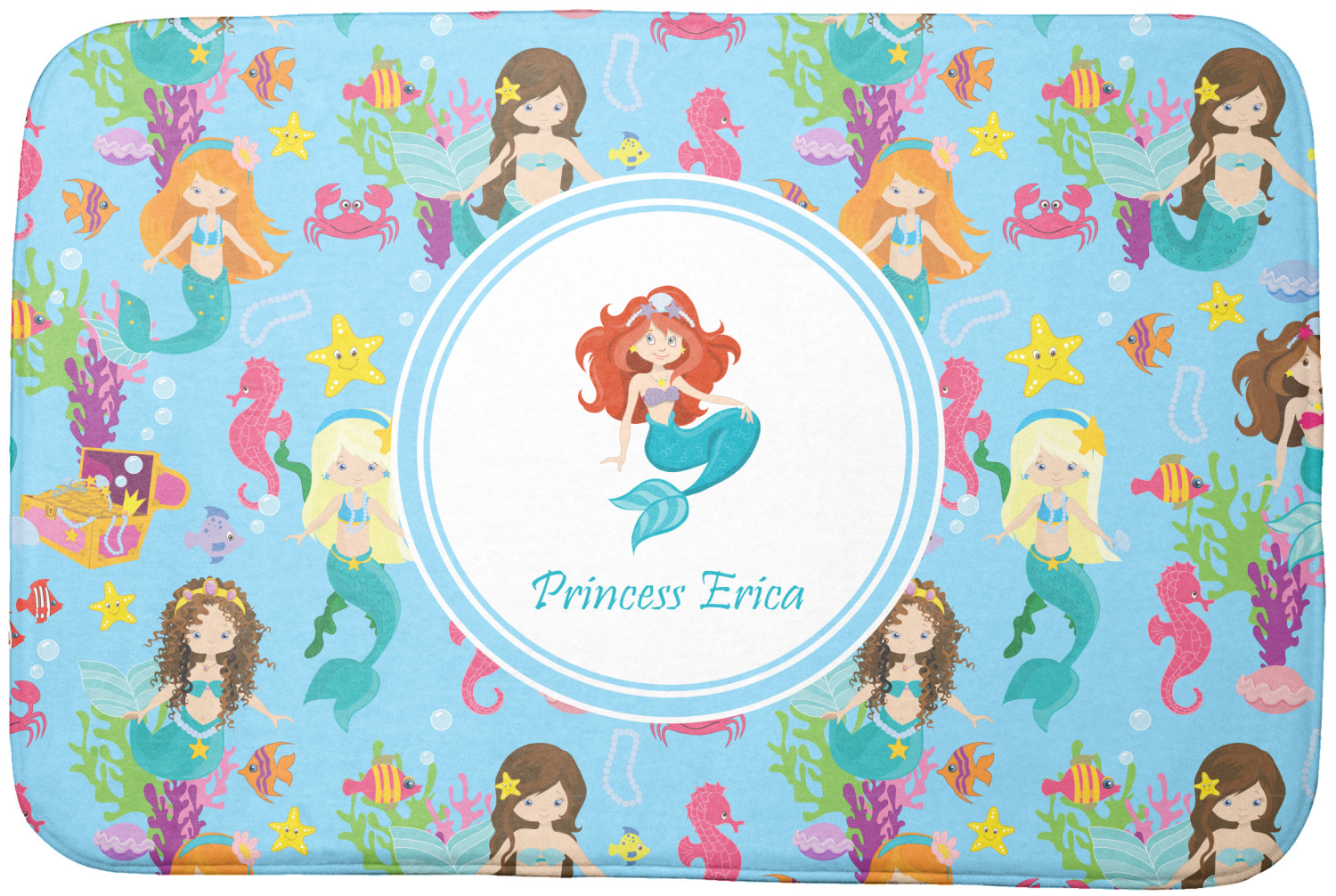 Love mermaids? This customize-able design has mermaids, sea creatures such as seahorses, fish, crabs, seahorses, oysters, seaweed and of course a treasure chest. We chose a soft blue to represent water for the background. You can change this to any color you desire. We have featured a mermaid in a round label, along with personalization under the mermaid graphic.