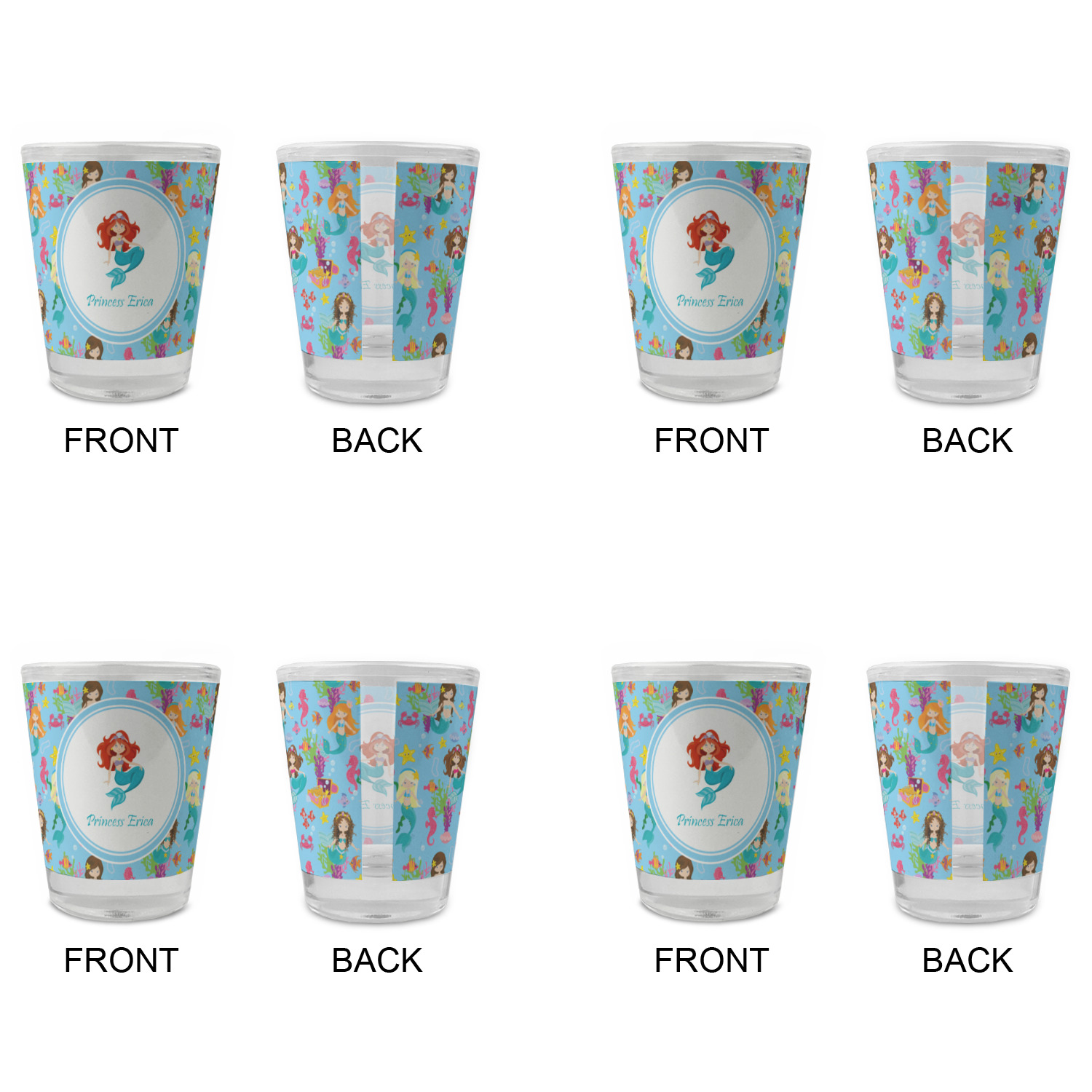 Made with frosted glass, these shot glasses are printed in full color with the design of your choice. They are a standard 1.5oz shot glass and are 2.4" tall. The print is wrapped around the shot glass in a full wrap and boldly displays your customization.