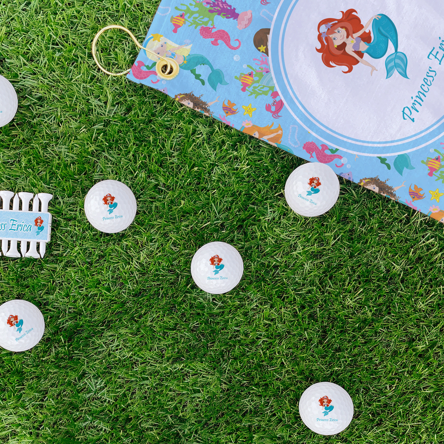 Love mermaids? This customize-able design has mermaids, sea creatures such as seahorses, fish, crabs, seahorses, oysters, seaweed and of course a treasure chest. We chose a soft blue to represent water for the background. You can change this to any color you desire. We have featured a mermaid in a round label, along with personalization under the mermaid graphic.