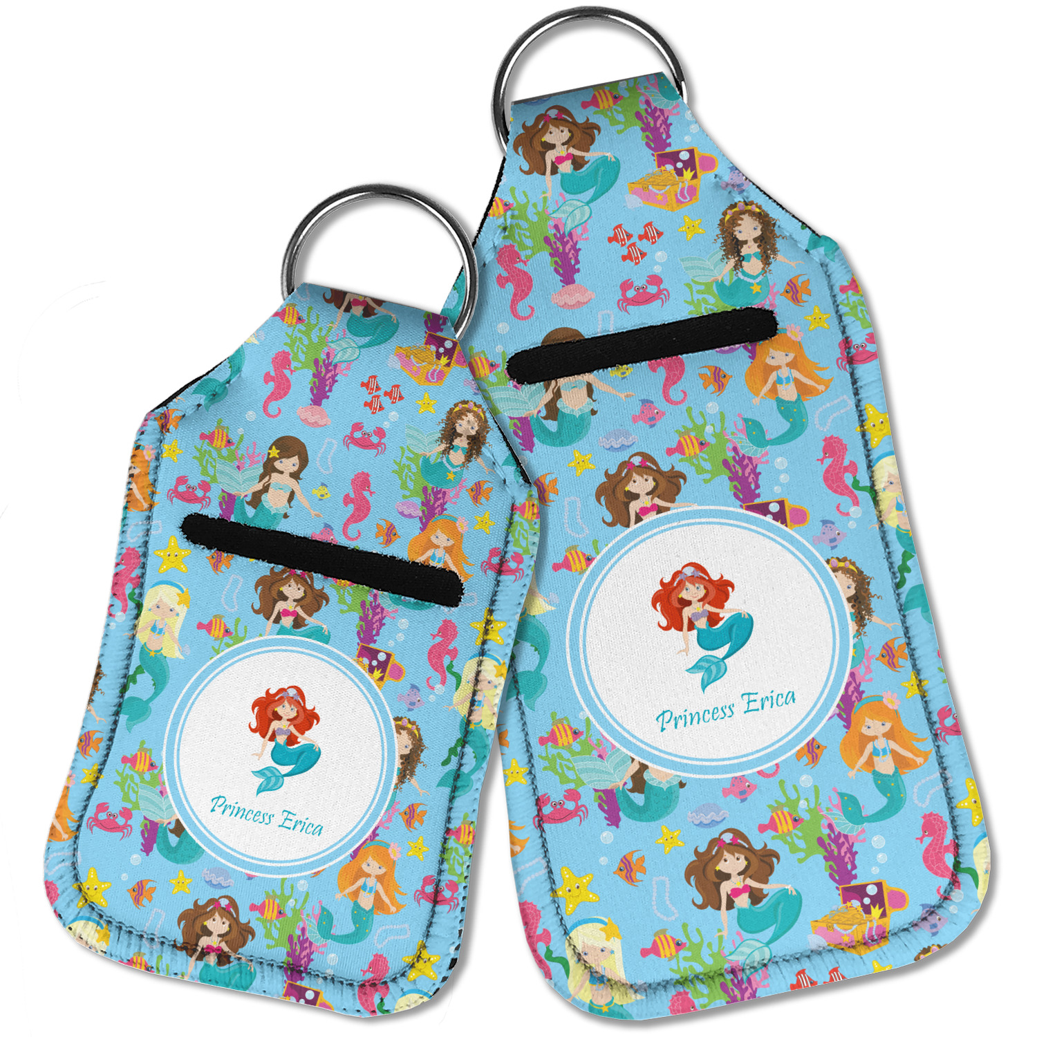 Each hand sanitizer holder comes with its own empty travel-sized, refillable hand sanitizer sure to fit snug in your customized sanitizer case! Our hand sanitizer cases are a durable, yet soft neoprene material sure to last any daily activities or travel agenda. Customize and personalize a hand sanitizer bottle holder with one of our two sizes - small (4.25" x 2.25") or large (5.5" x 2.5"). Each travel sanitizer holder comes with a keyring for attachment on bags, keys, or more!