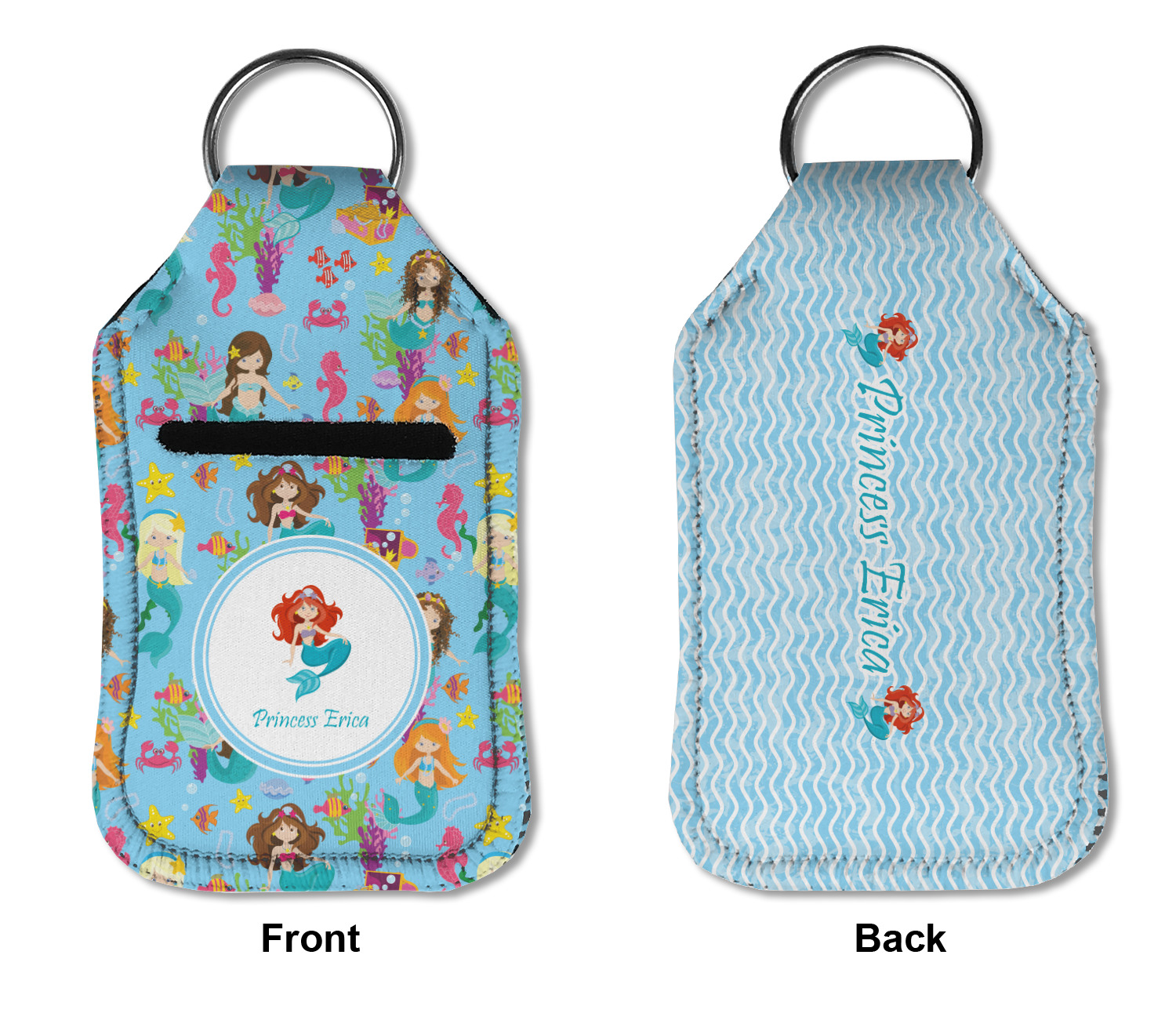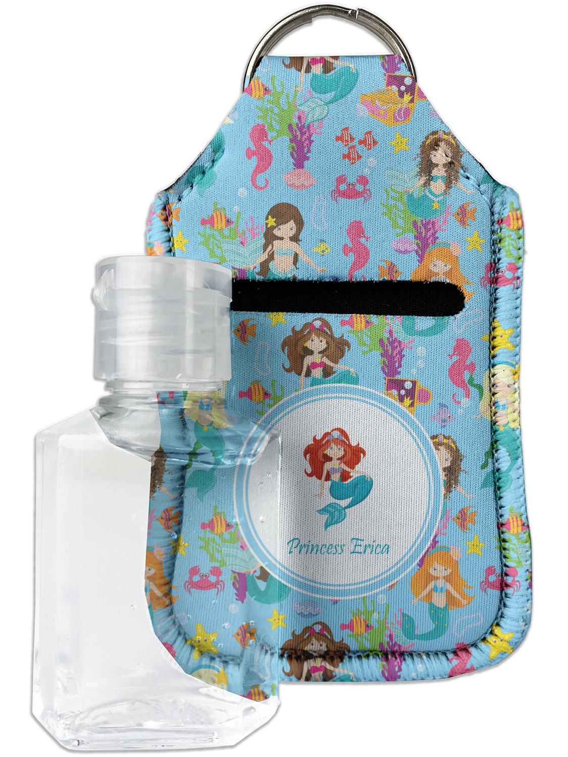 Each hand sanitizer holder comes with its own empty travel-sized, refillable hand sanitizer sure to fit snug in your customized sanitizer case! Our hand sanitizer cases are a durable, yet soft neoprene material sure to last any daily activities or travel agenda. Customize and personalize a hand sanitizer bottle holder with one of our two sizes - small (4.25" x 2.25") or large (5.5" x 2.5"). Each travel sanitizer holder comes with a keyring for attachment on bags, keys, or more!