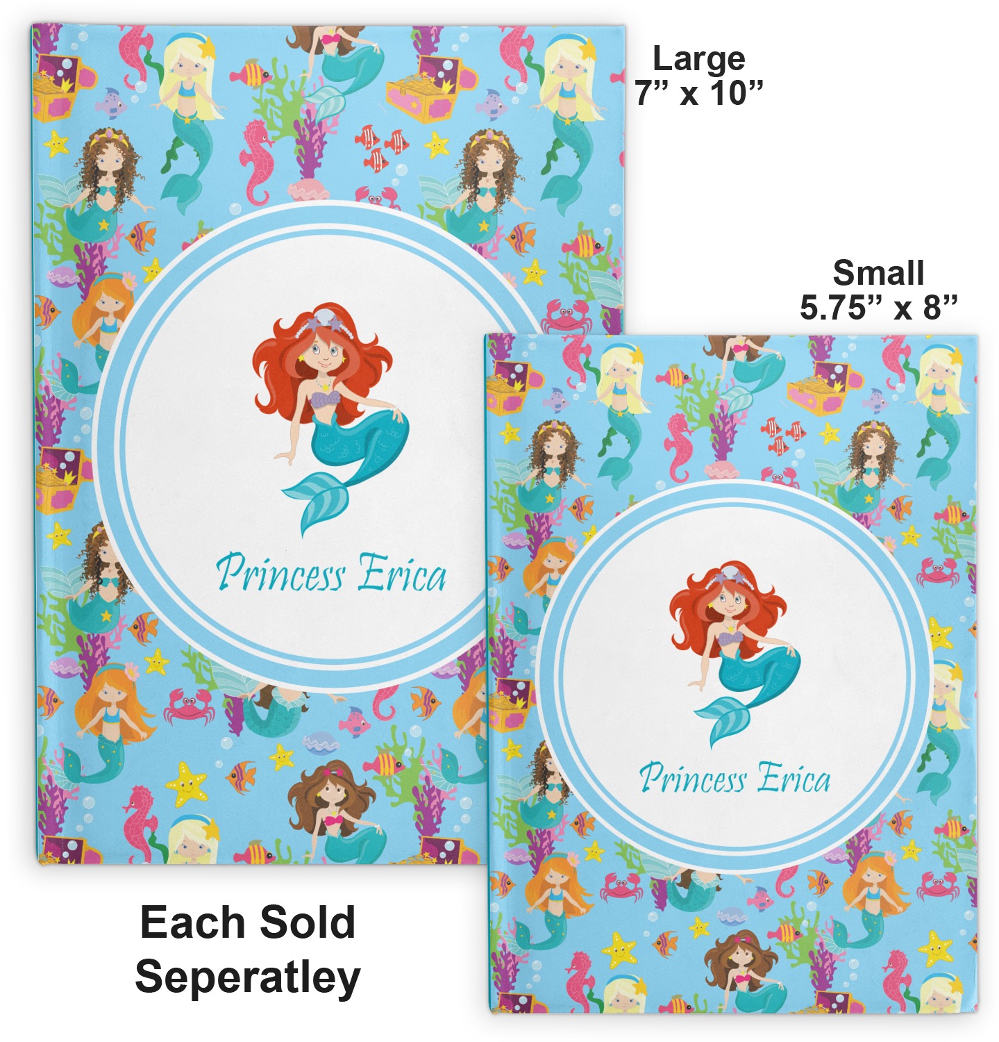 Love mermaids? This customize-able design has mermaids, sea creatures such as seahorses, fish, crabs, seahorses, oysters, seaweed and of course a treasure chest. We chose a soft blue to represent water for the background. You can change this to any color you desire. We have featured a mermaid in a round label, along with personalization under the mermaid graphic.