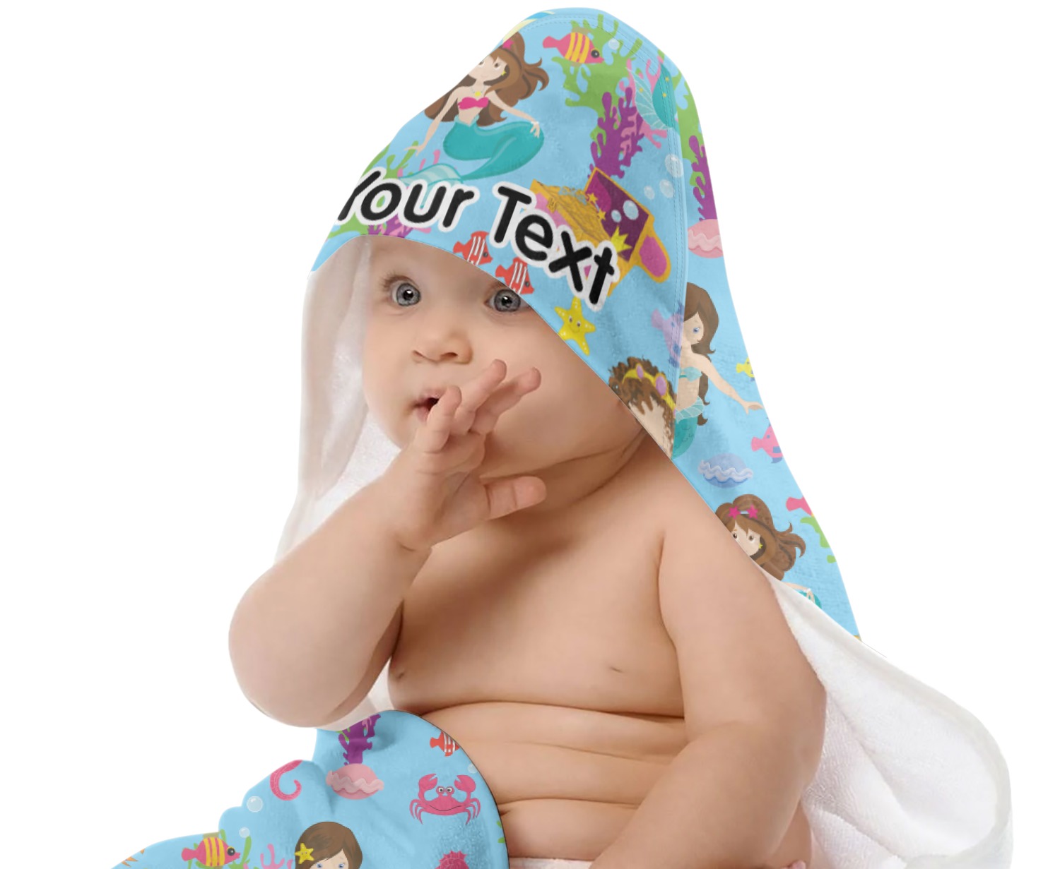 This baby towel is made with a plush microfiber velour and cotton terry. and thus will be soft and gentle against your newborn's skin, but also, very absorbent. Your customization is printed across the front & the hood, while the inside is a classy white.