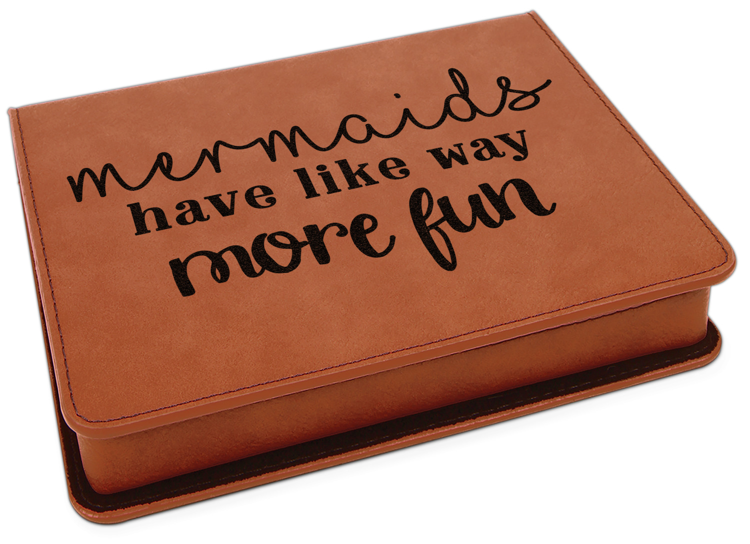 This set includes a wine stopper, pourer, drip ring, and a corkscrew! The exterior of the box is a gorgeous, cognac-brown leatherette, while the interior is covered in a black, velvety material. Four foam indentations, unique to the shape of the wine tool, are found at the bottom half of the box's interior. The tools fit snugly into each of their designated spots, and the foam material helps to protect the integrity of your tools. Each of the wine gadgets features a bamboo accent, with the location and style depending on the tool itself. We laser engrave your personalized design onto the lid of the box, which easily flips open and is secured closed by a small magnet. The wine accessories box measures at 7 by 5.5 inches in total.