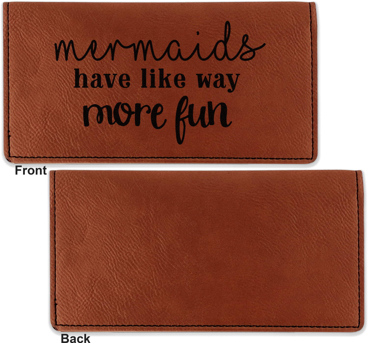 Go into our design center to start personalizing. Your checkbook cover will be laser engraved, making the graphic or text a black color. Choose a fun saying, monogram, or font to go on your checkbook cover. You have the opportunity to do it double or single sided.
