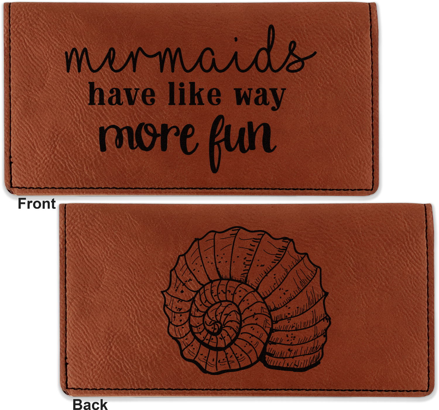 Go into our design center to start personalizing. Your checkbook cover will be laser engraved, making the graphic or text a black color. Choose a fun saying, monogram, or font to go on your checkbook cover. You have the opportunity to do it double or single sided.