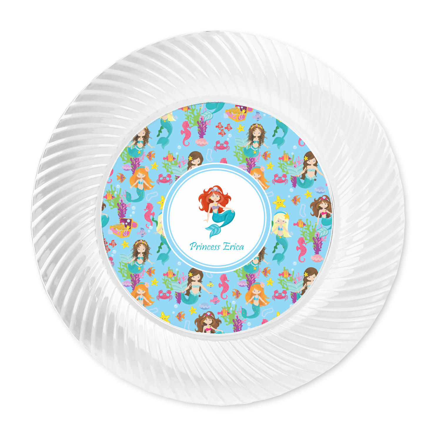 Made from a beautiful clear plastic plate as a base, your design is printed to the underside of the plate. The outside of these disposable plates has a classic swirl texture to it for a high quality look and feel.