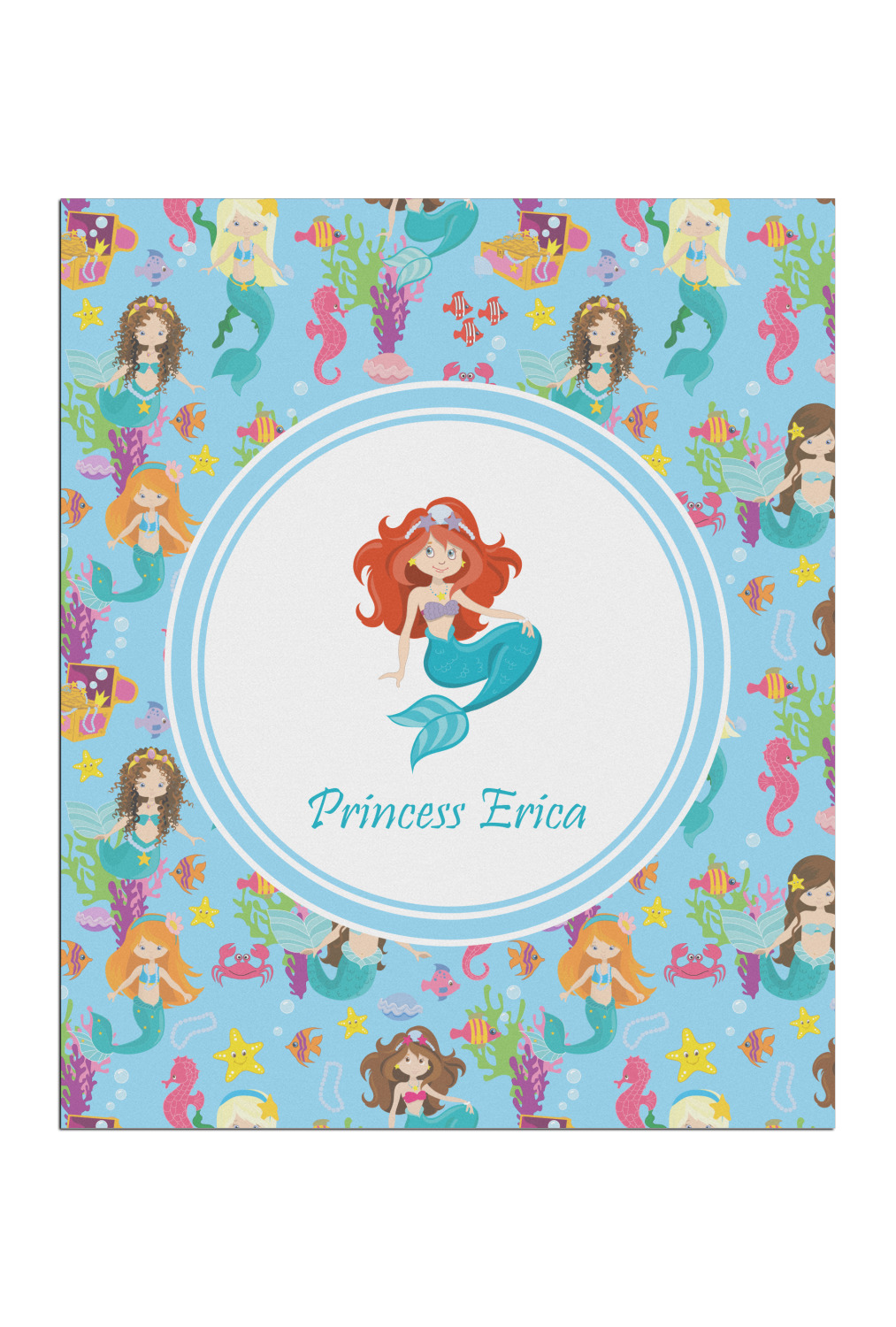Love mermaids? This customize-able design has mermaids, sea creatures such as seahorses, fish, crabs, seahorses, oysters, seaweed and of course a treasure chest. We chose a soft blue to represent water for the background. You can change this to any color you desire. We have featured a mermaid in a round label, along with personalization under the mermaid graphic.