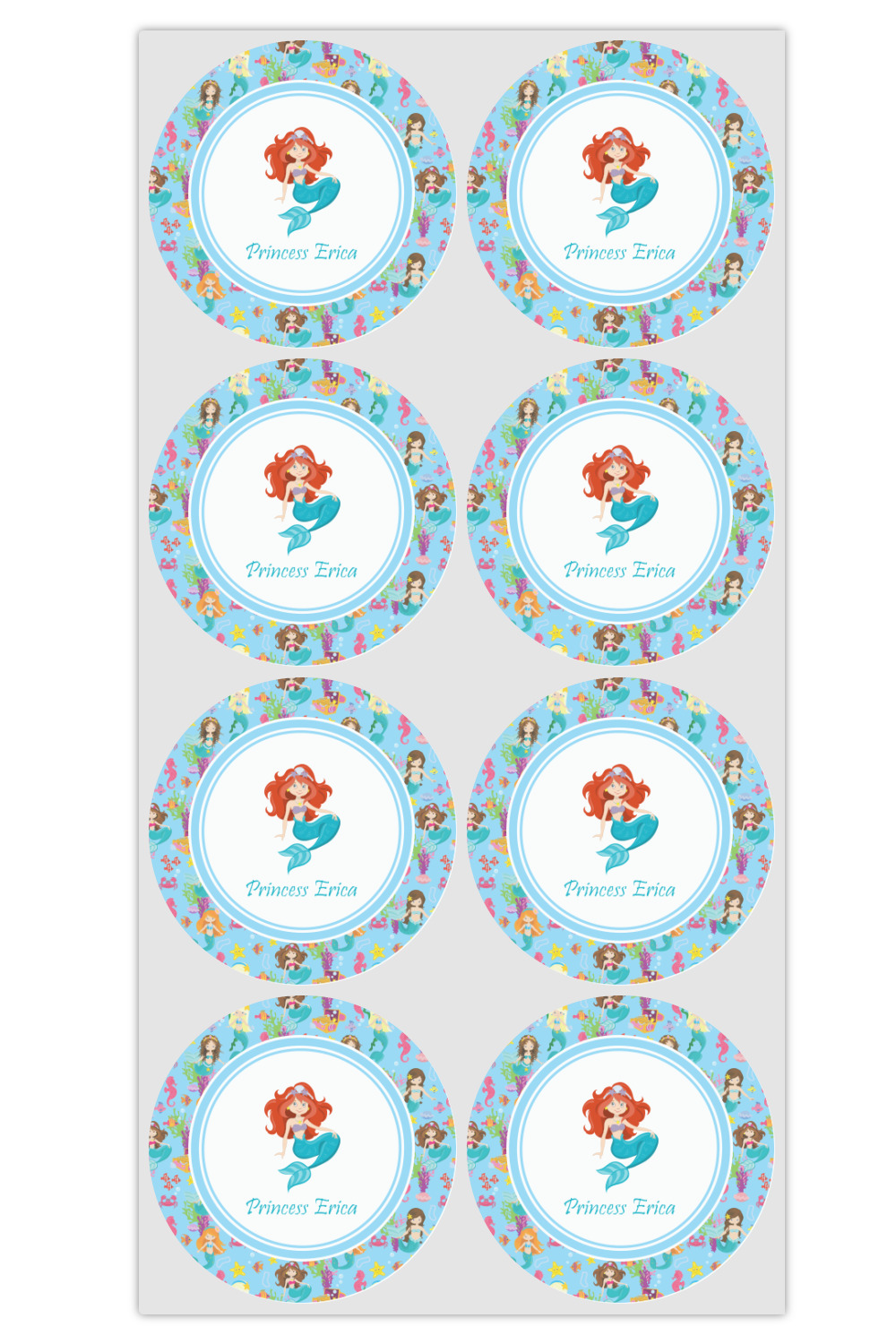 Love mermaids? This customize-able design has mermaids, sea creatures such as seahorses, fish, crabs, seahorses, oysters, seaweed and of course a treasure chest. We chose a soft blue to represent water for the background. You can change this to any color you desire. We have featured a mermaid in a round label, along with personalization under the mermaid graphic.